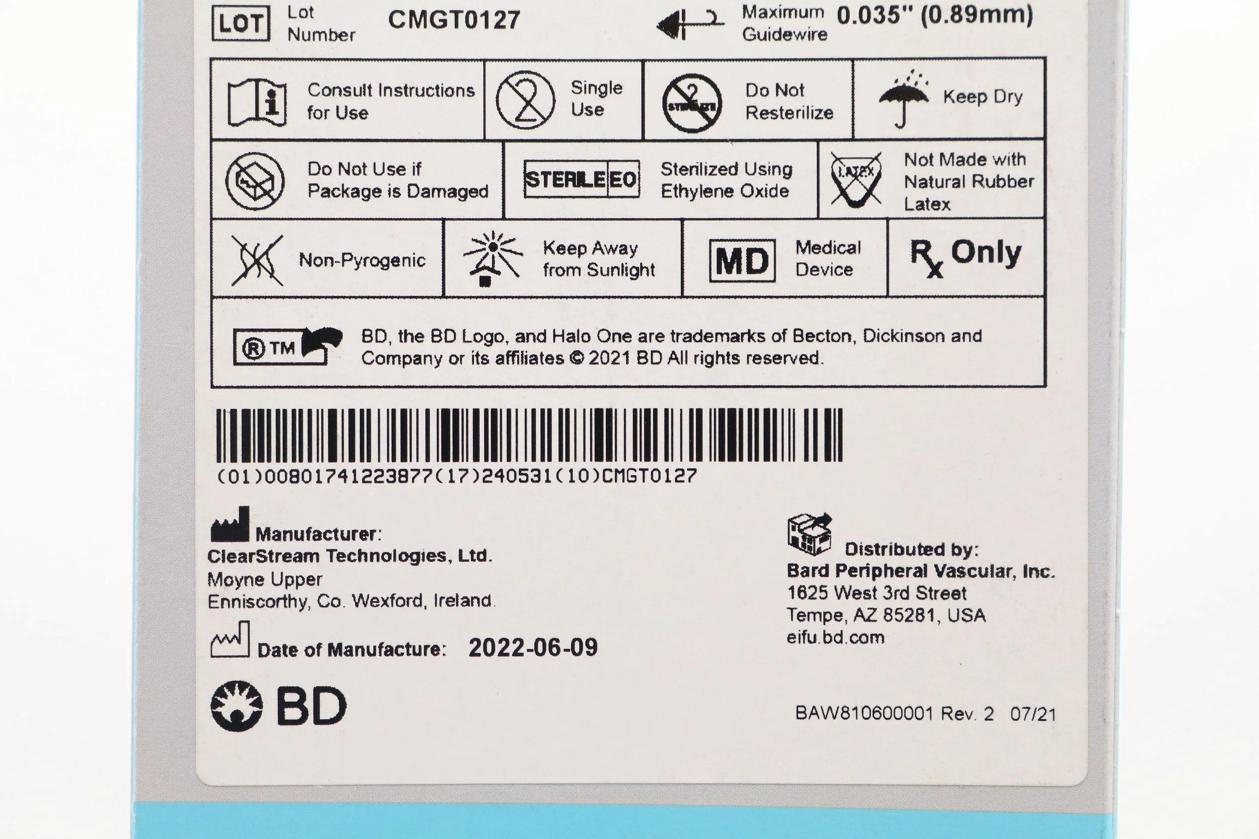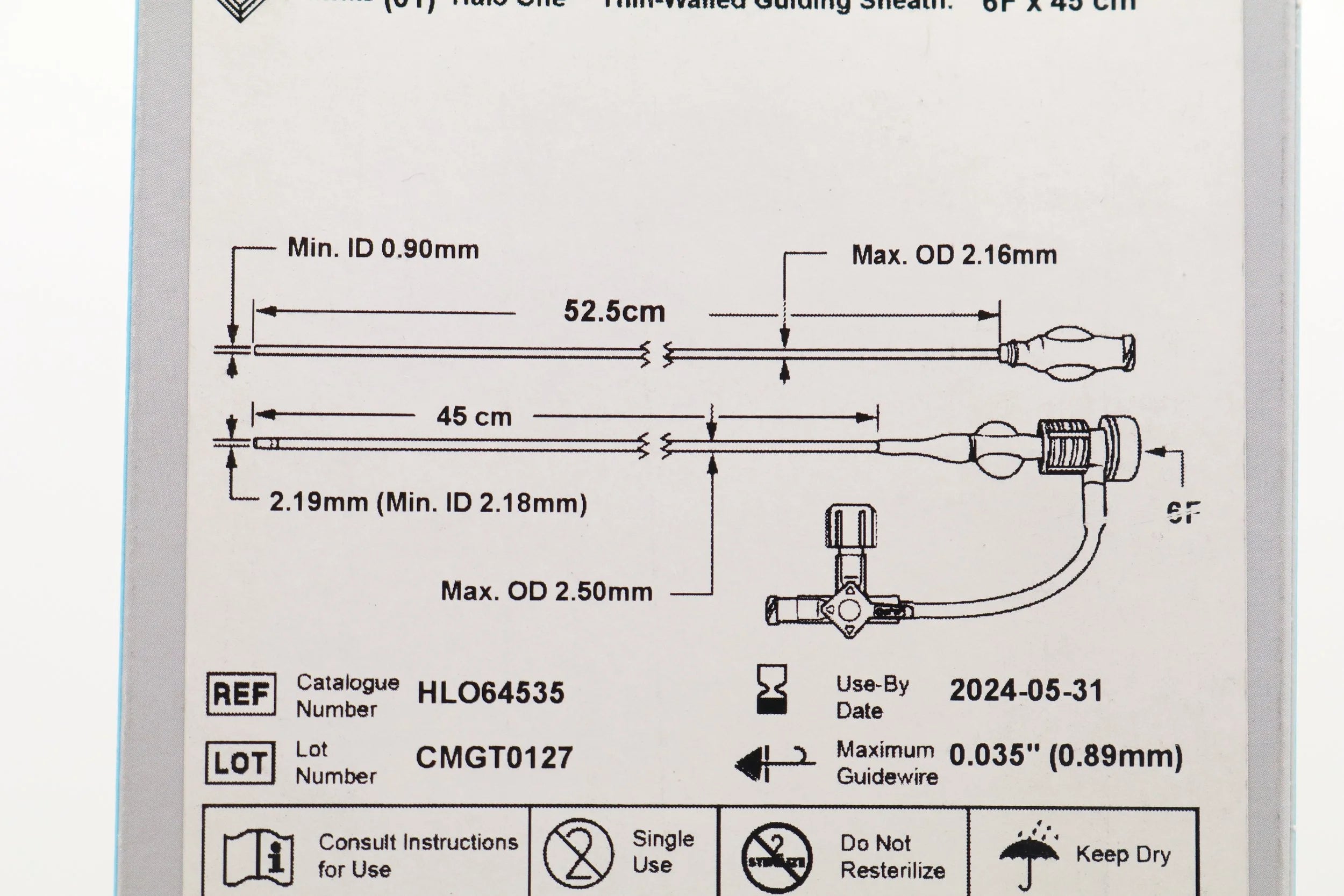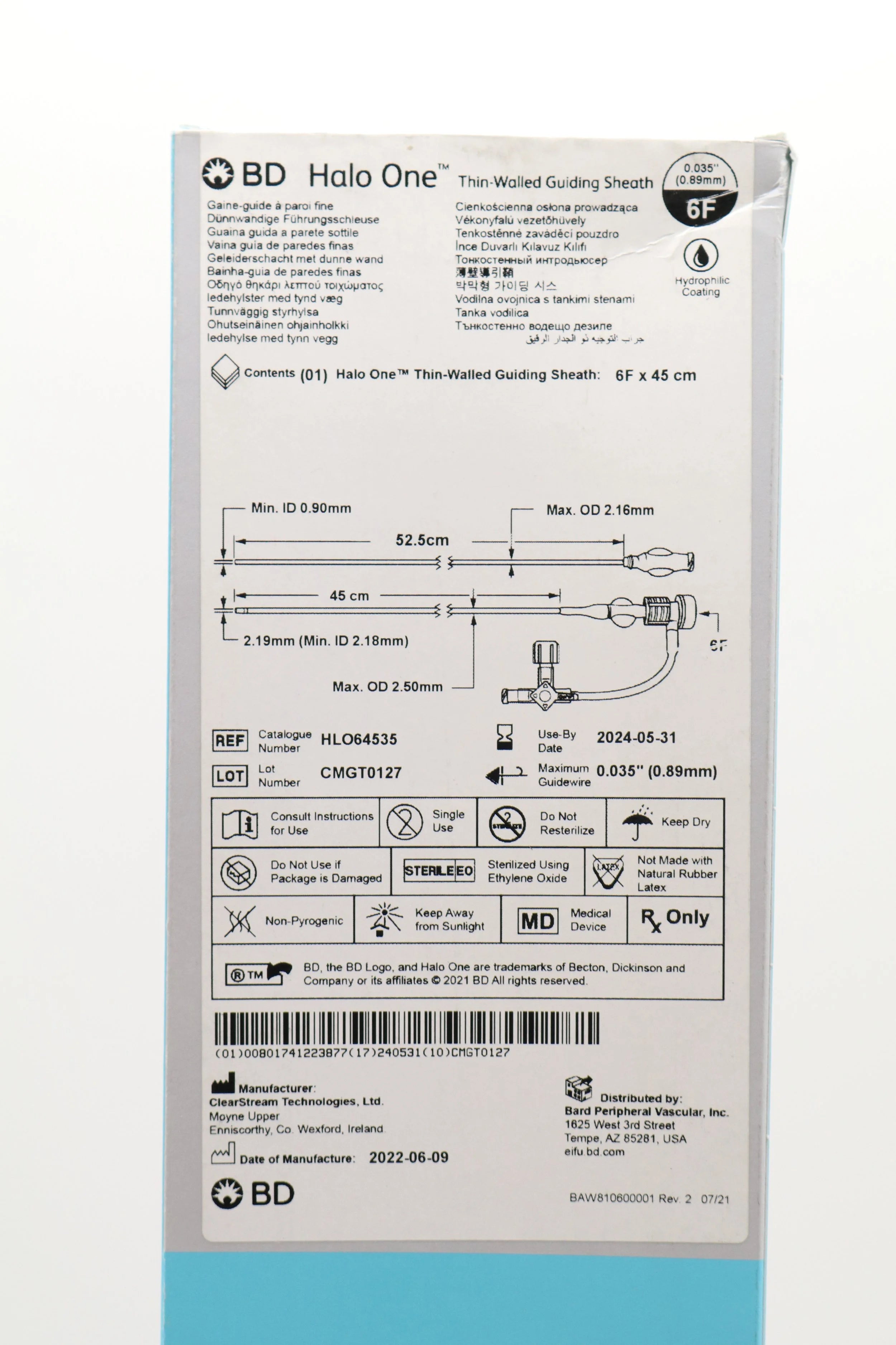 BARD | HLO64535 | EXPIRED | BARD HALO ONE THIN-WALLED GUIDING SHEATH 6F X 45CM, 0.035"