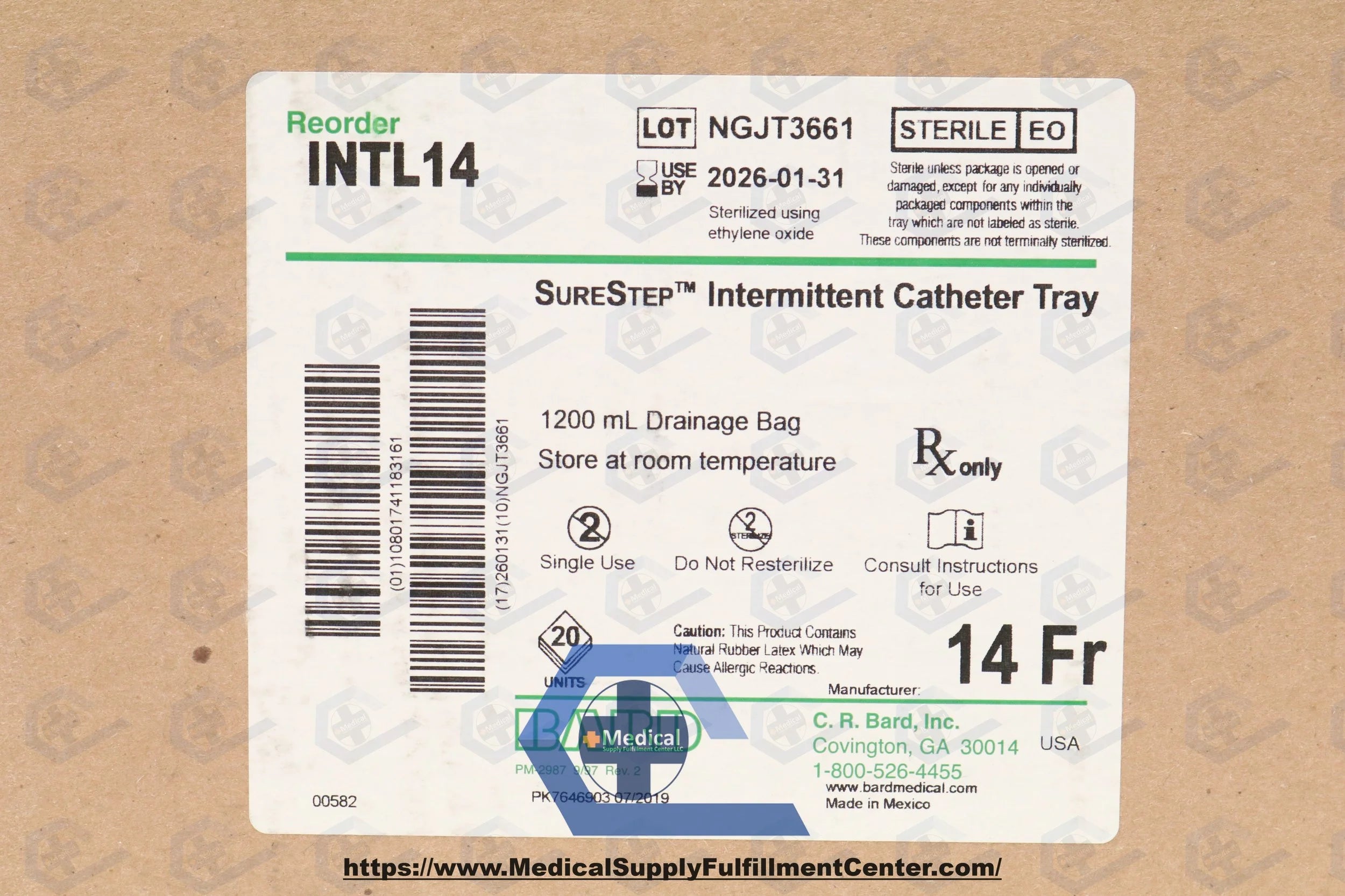 Bard | INTL14 | IN-DATE | CASE OF 20 | Surestep Intermittent Catheter Tray 14F