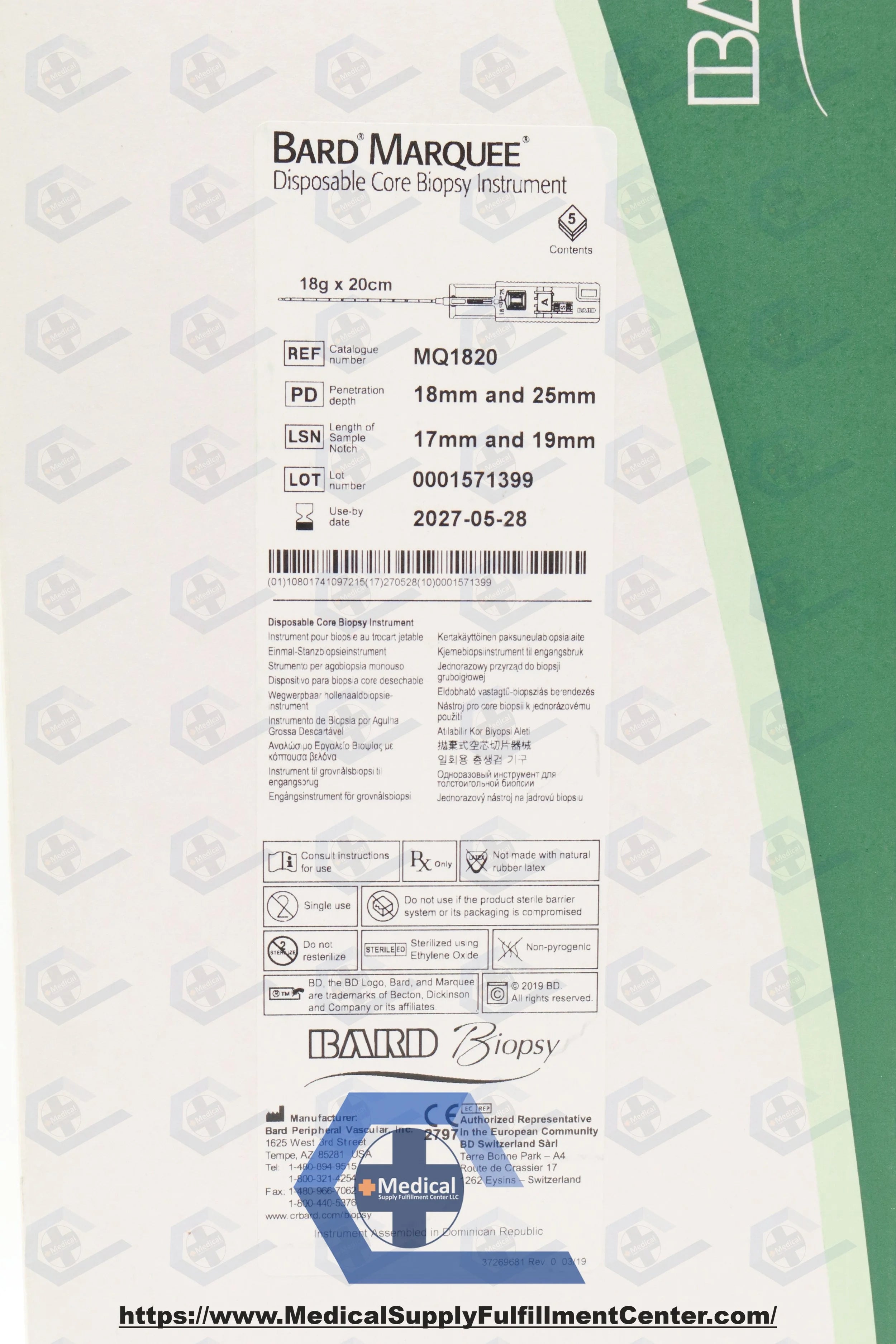 Bard | MQ1820 | Marquee Disposable Core Biopsy 18G x 20cm