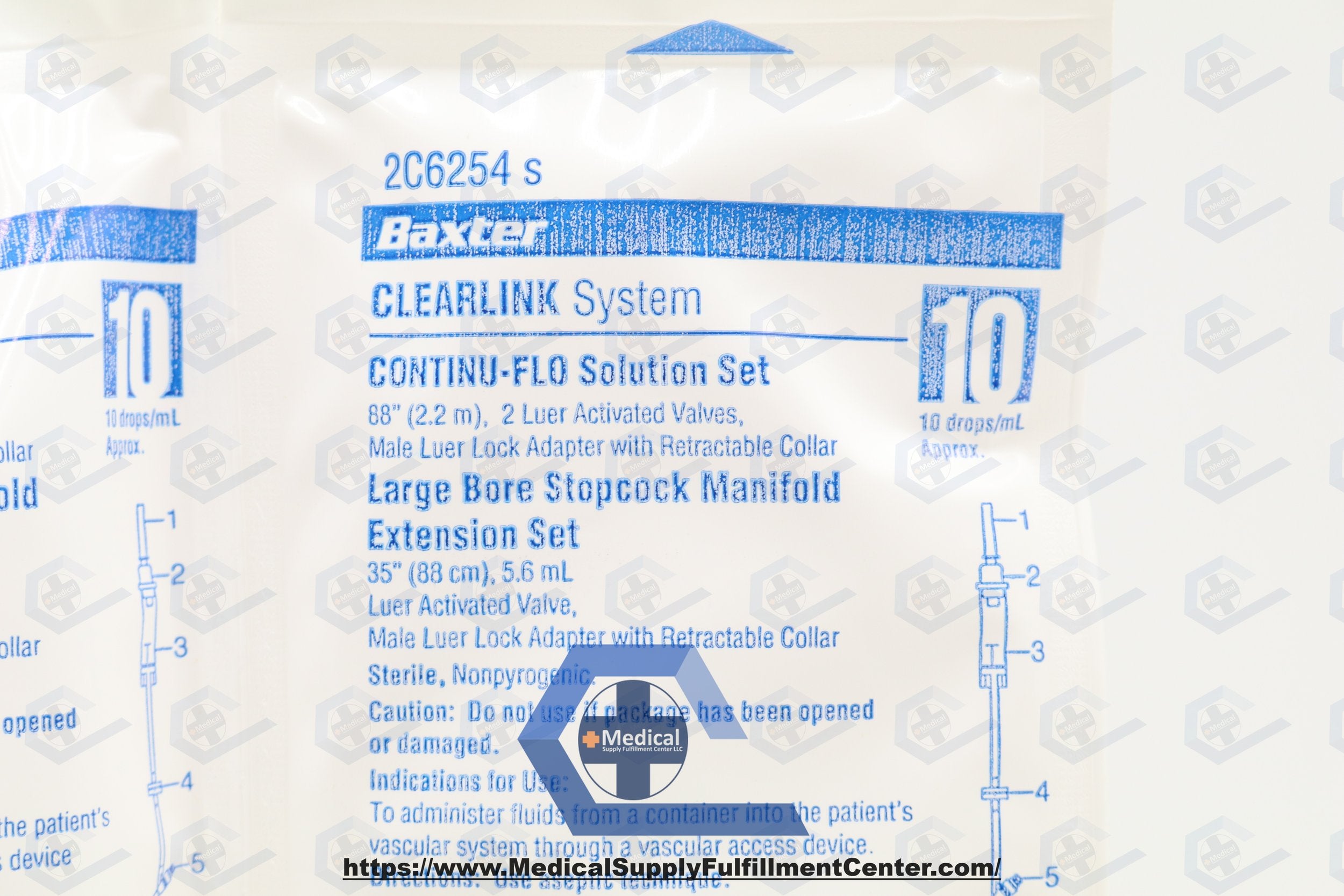 Baxter | 2C6254 | CONTINU-FLO Solution Set, 2 CLEARLINK Luer Activated Valves, Backcheck Valve, 88"