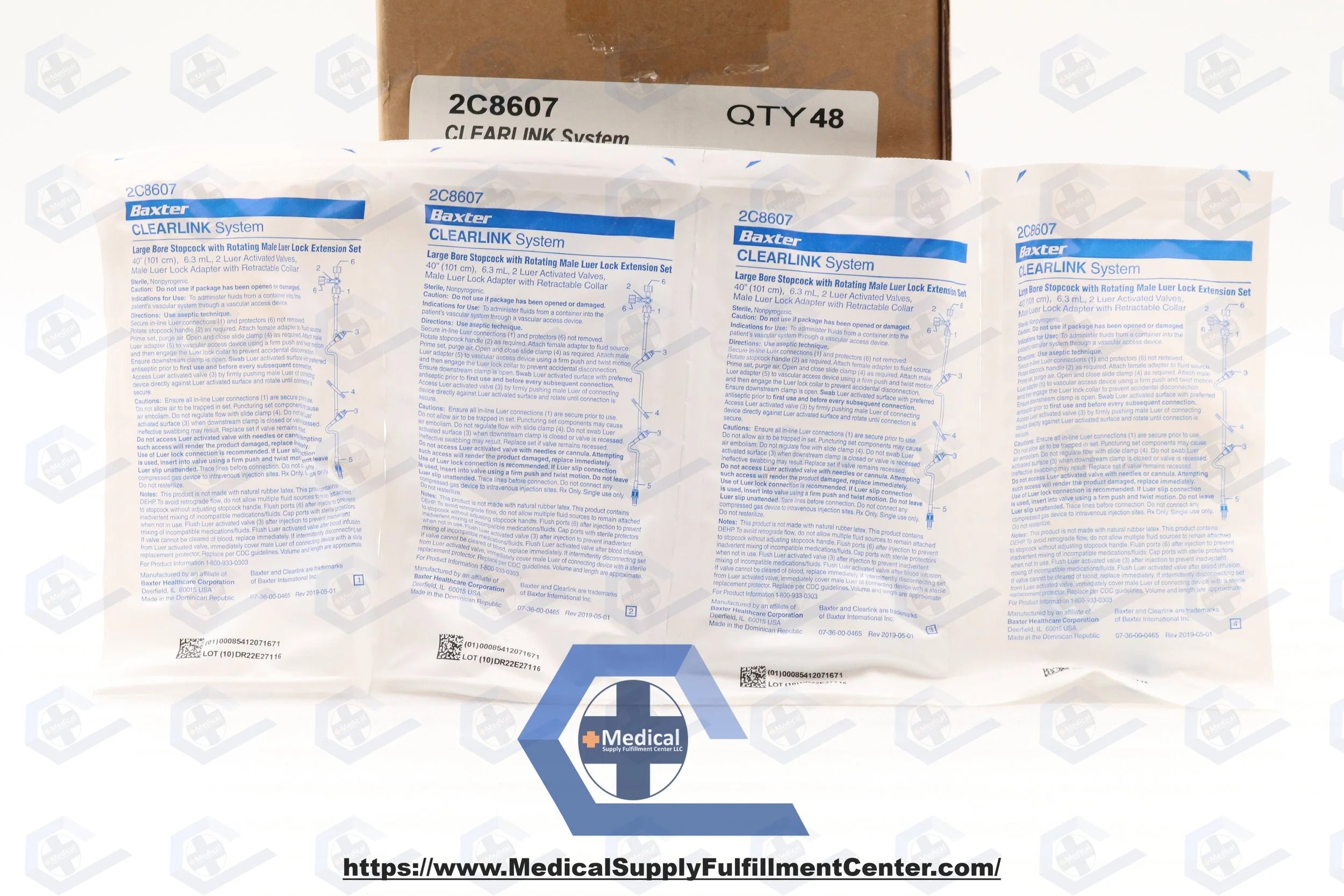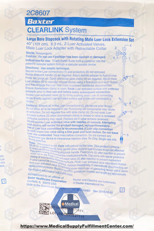 Baxter | 2C8607 | NO DATE | Box of 48 | Duo-Vent Clearlink Solution Sets - Clearlink 40" Extension Set with 4-Way Large-Bore Stopcock, 2 Luer-Activated Valves, Male Luer Lock Adapter