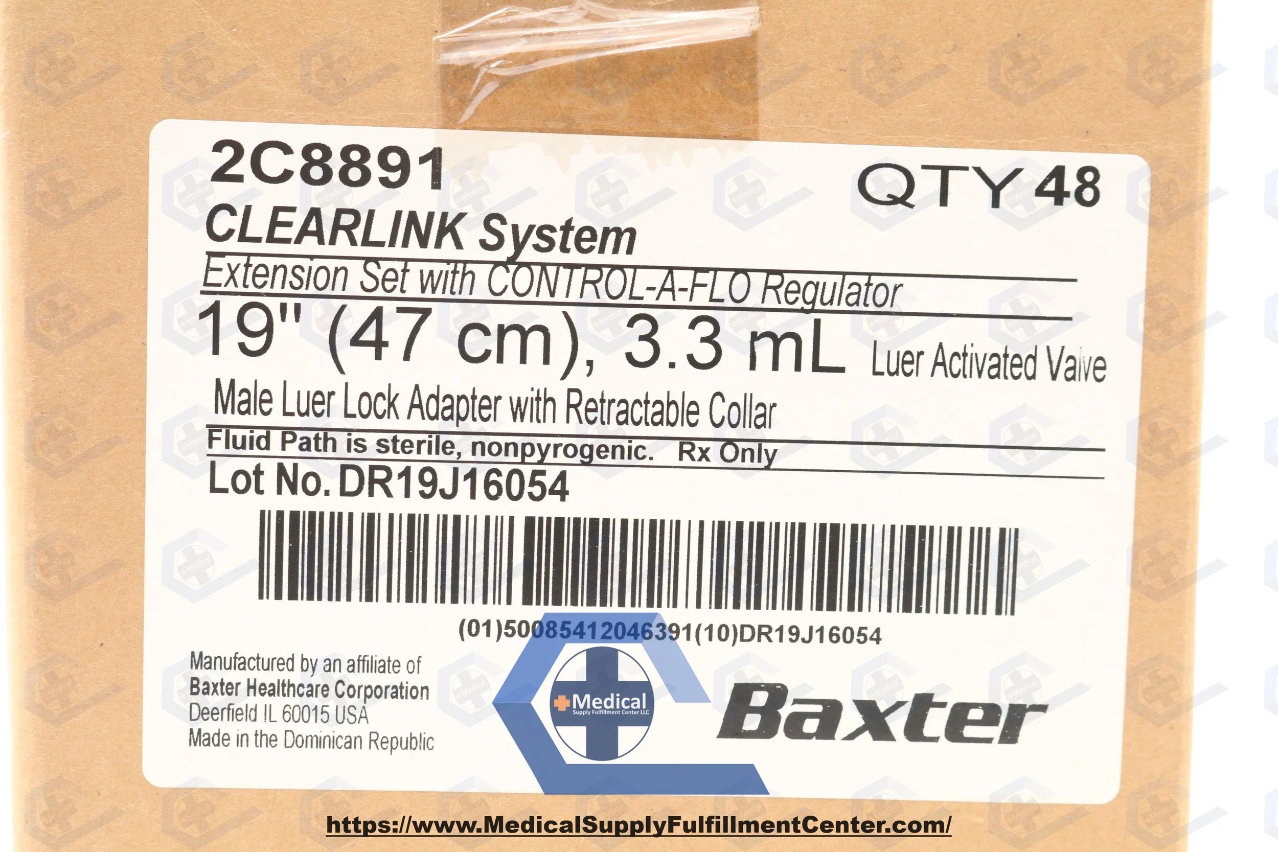 Baxter | 2C8891 | IN-DATE | BOX OF 48 | Straight-Type Extension Set, CONTROL-A-FLO Regulator, 19"