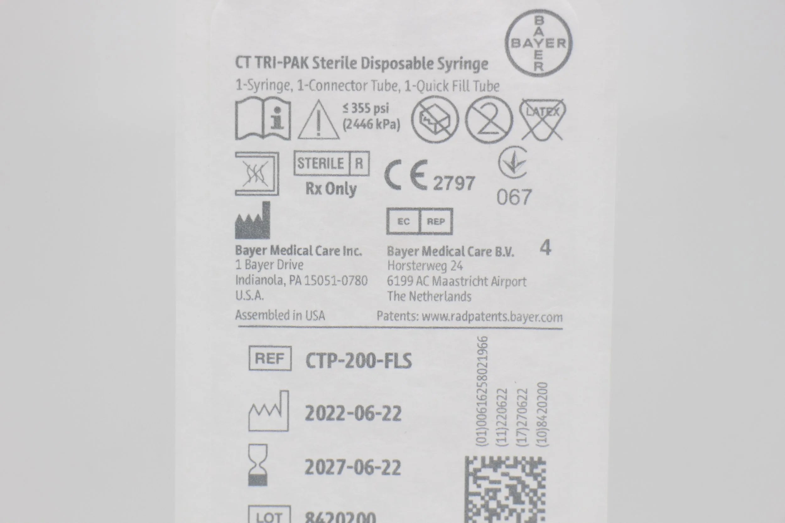 Bayer | CTP-200-FLS | CT TRI-PAK Sterile Disposable Syringe