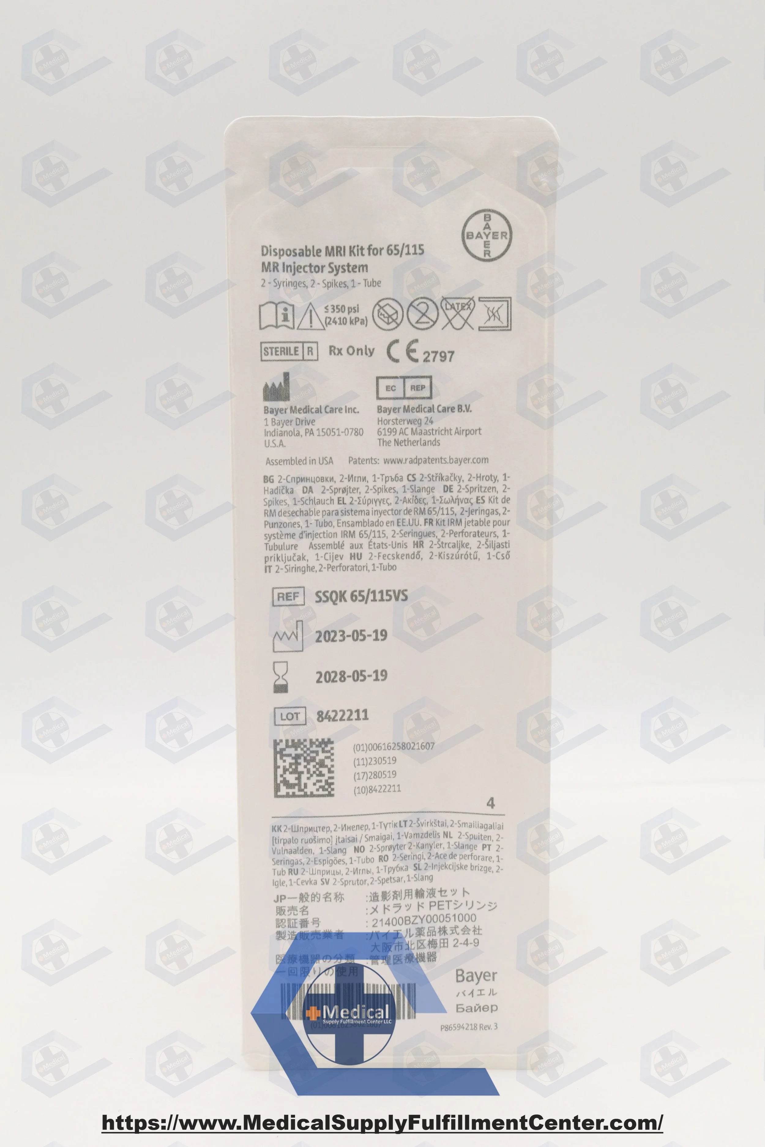 Bayer | SSQK-65/115VS | N/A | Box of 50 | SSQK 65/115VS Medrad Kit Syringe Spectris Solaris With 115mL Qwik-Fit Syringe