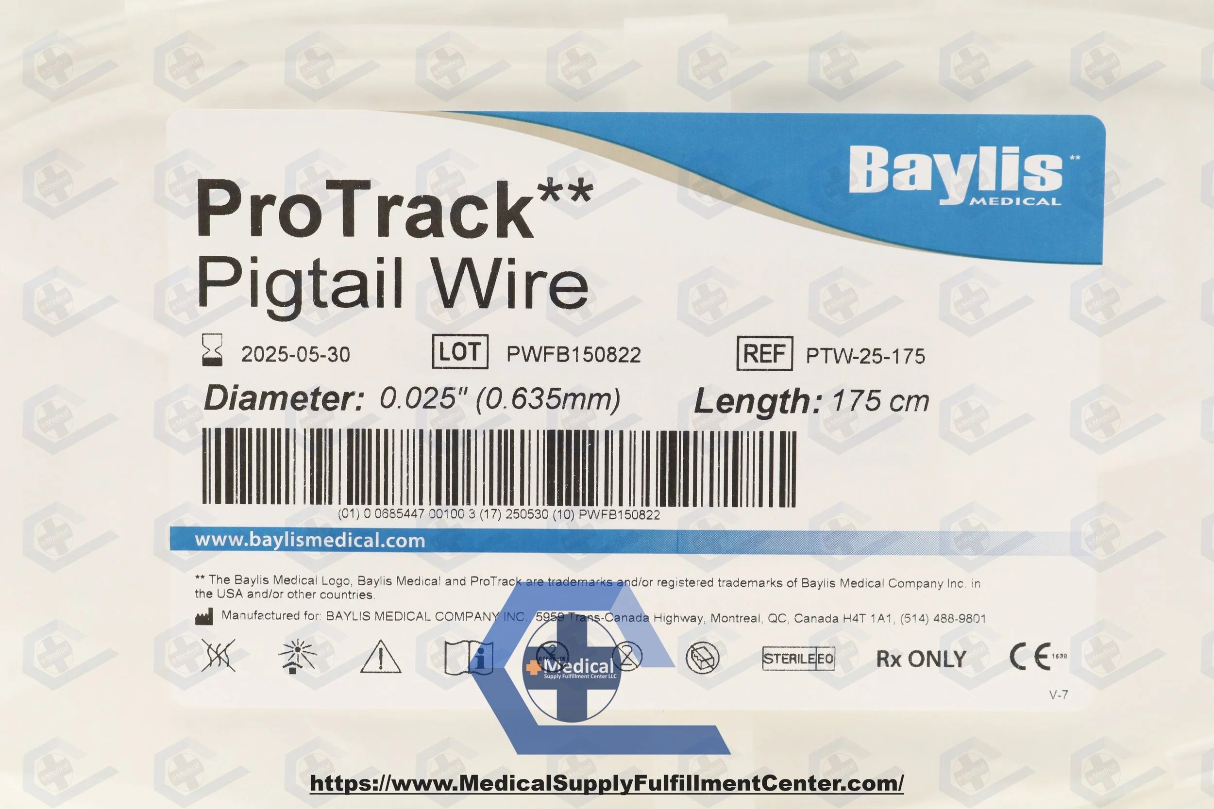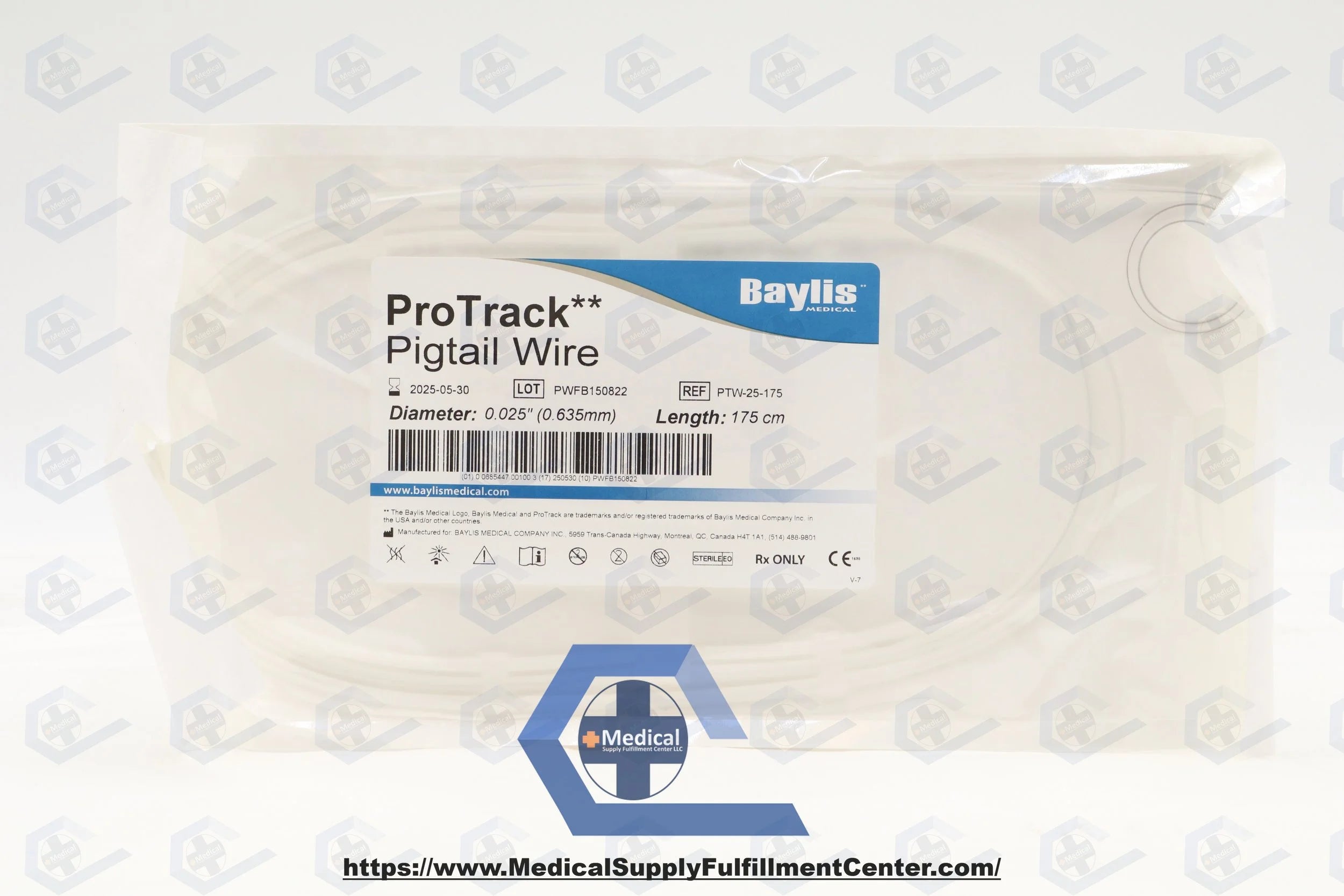 Baylis Medical Company | PTW-25-175 | EXPIRED | EACHES | Protrack Pigtail Wire .025 X 230cm