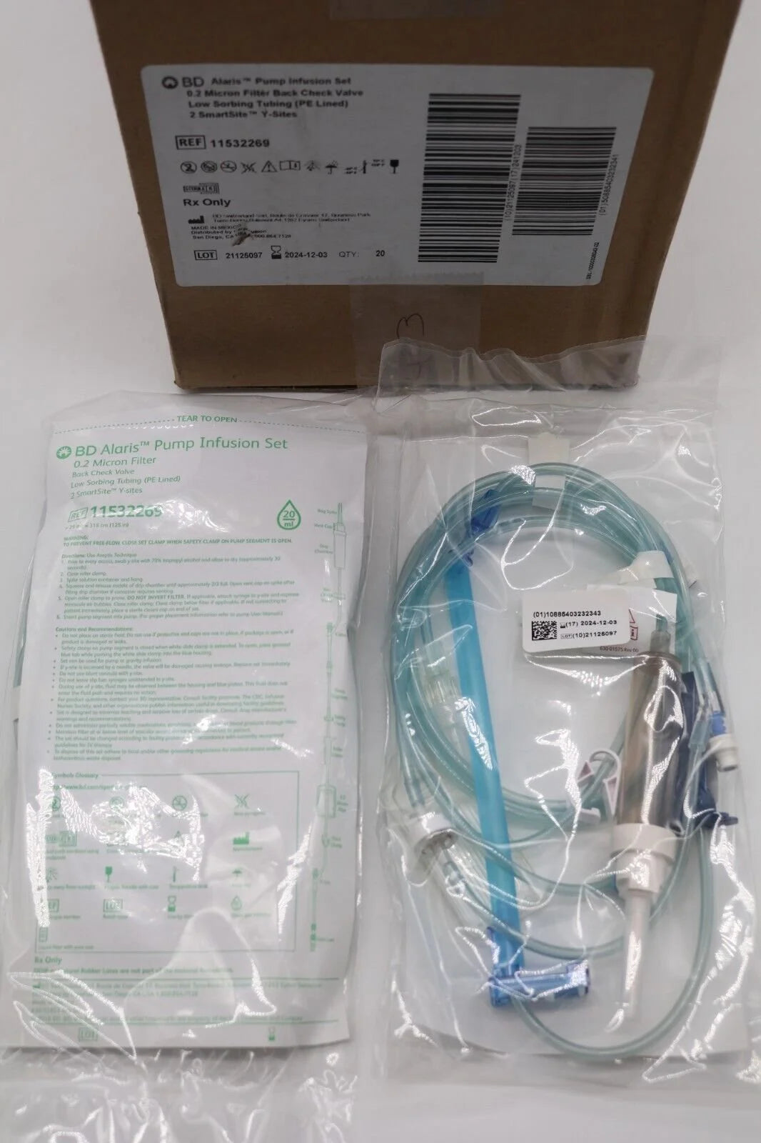 VBD | 11532269 | SHORTDATE | BOX OF 20 | Alaris Pump Infusion Set 0.2 Micron Filter Low Sorbing Tubing (PE Lined) Back Check Valve, Two SmartSite Y-Sites