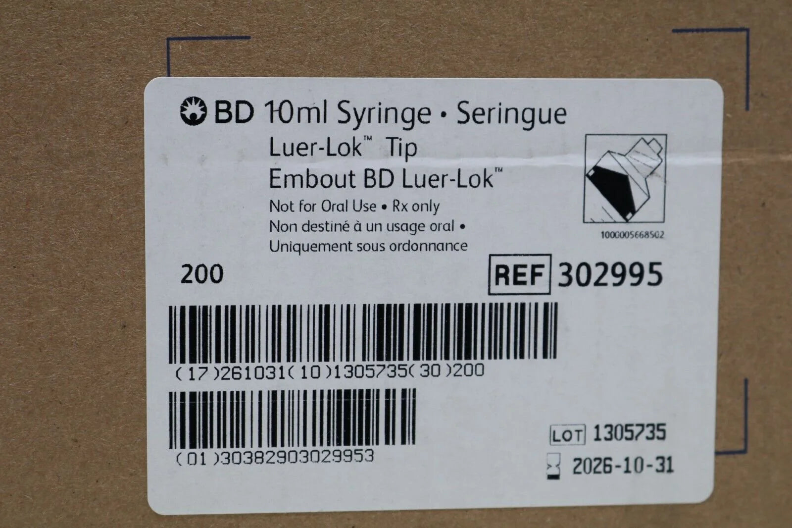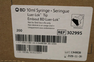 BD | 302995 | Box of 200 | 10mL Syringe Seringue Luer-Lok Tip