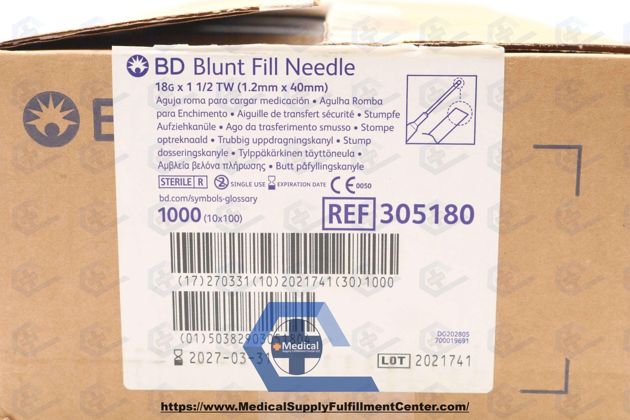 BD | 305180 | IN-DATE | Case of 1000 | PrecisionGlide Needle, 18G x 1 1/2", Blunt Fill