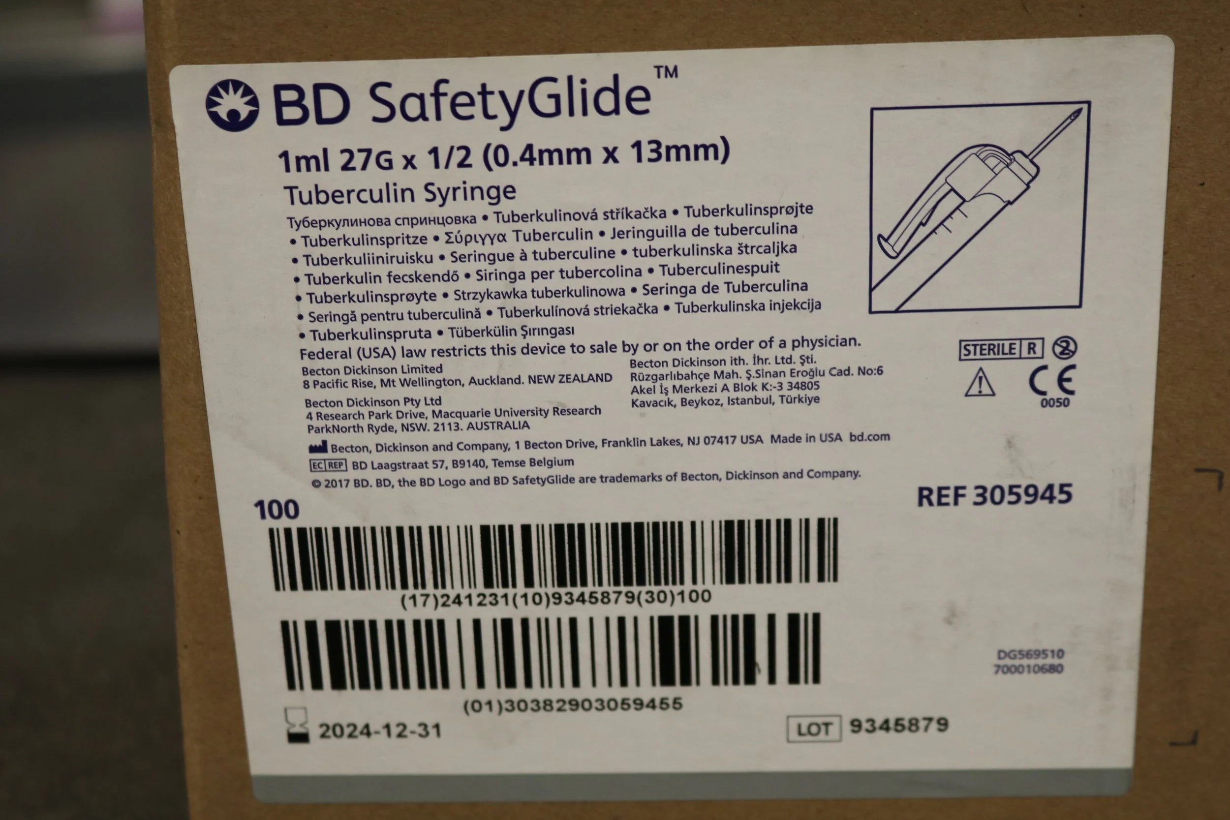 BD SafetyGlide 1ml Tuberculin Syringe Box of 100