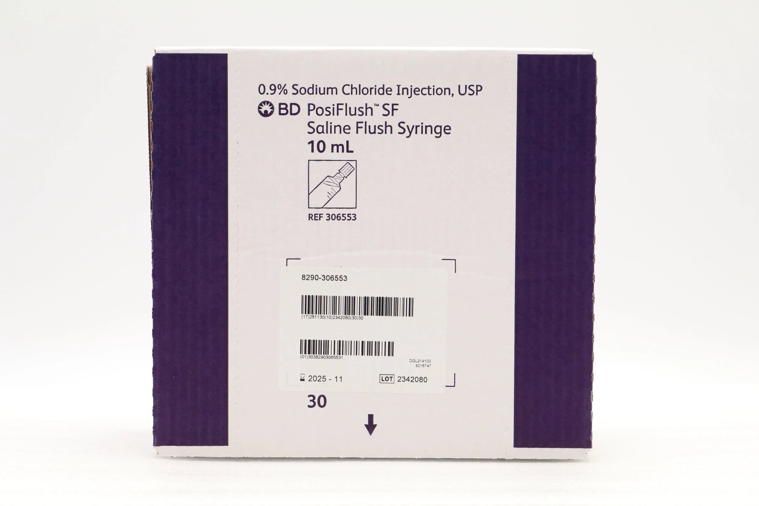 BD 306553 BOX OF 30 Normal Saline 0.9% IV Flush Posiflush SF Syringe 10mL Standard Plunger Rod