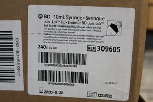 BD | 309605 | IN-DATE | BOX OF 240 | 10mL Luer-Lok Tip Syringes