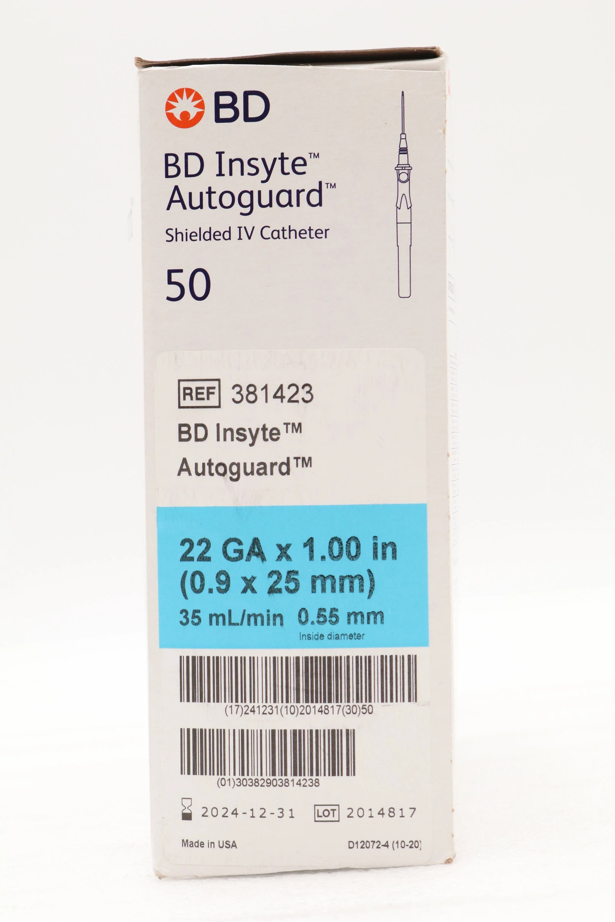 BD | 381423 | EXPIRED | BOX OF 50 | Insyte Autoguard Shielded I.V. Catheter 22G x 1" Blue