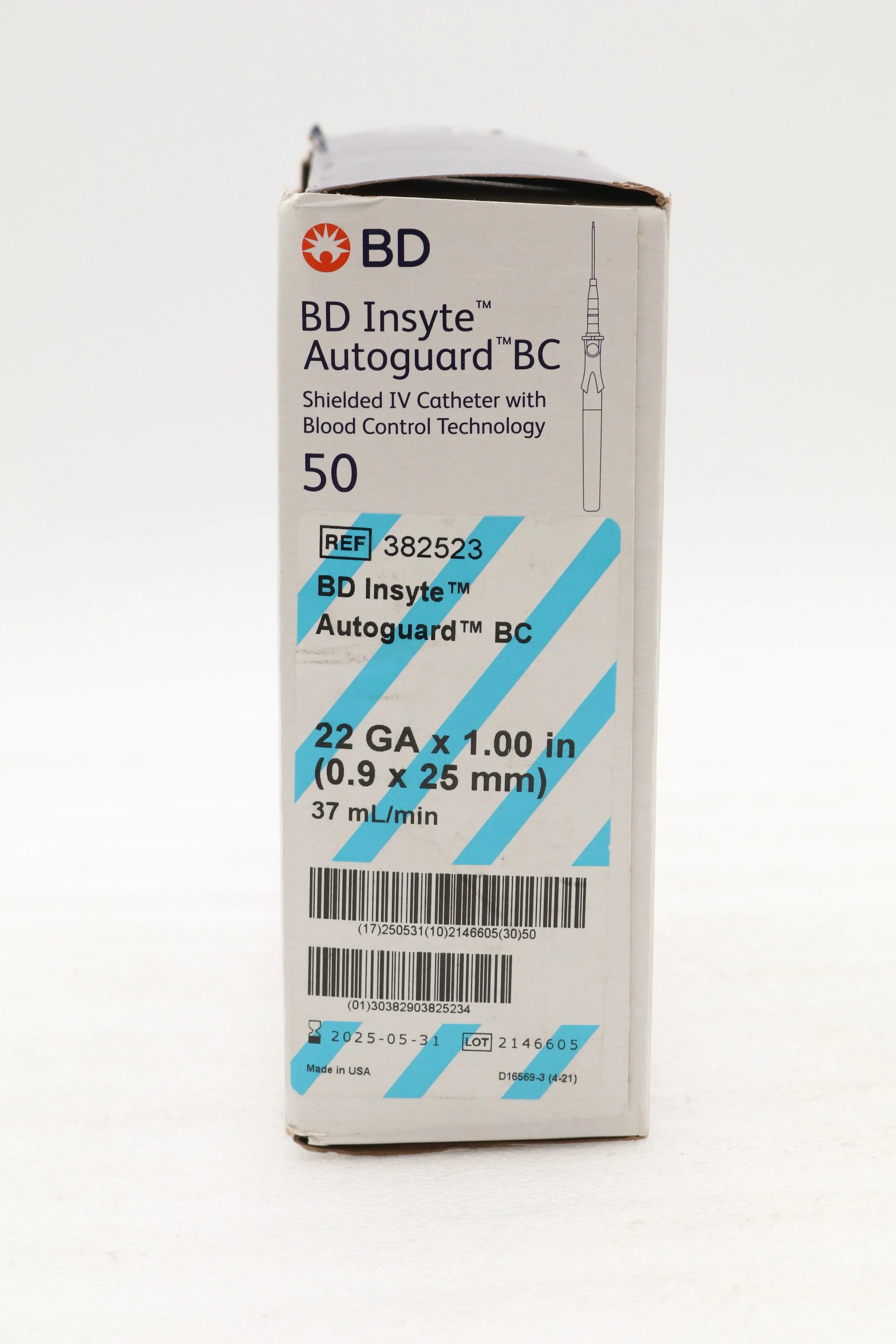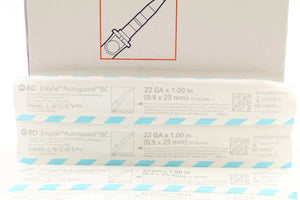 BD | 382523 | IN-DATE | BOX OF 50 | Catheters, Insyte Autoguard, BC Shielded 22 G x 1 Inch, Straight, Non-Winged, Button Retracting Needle
