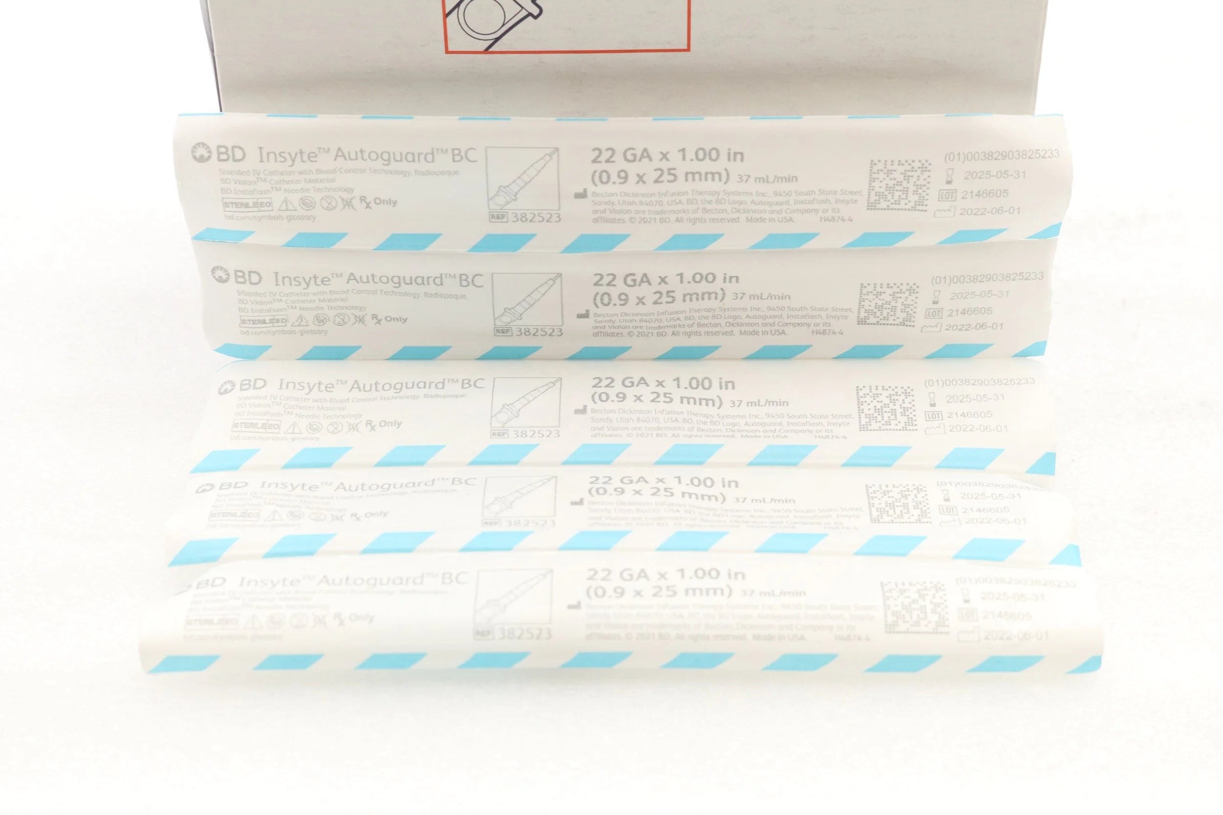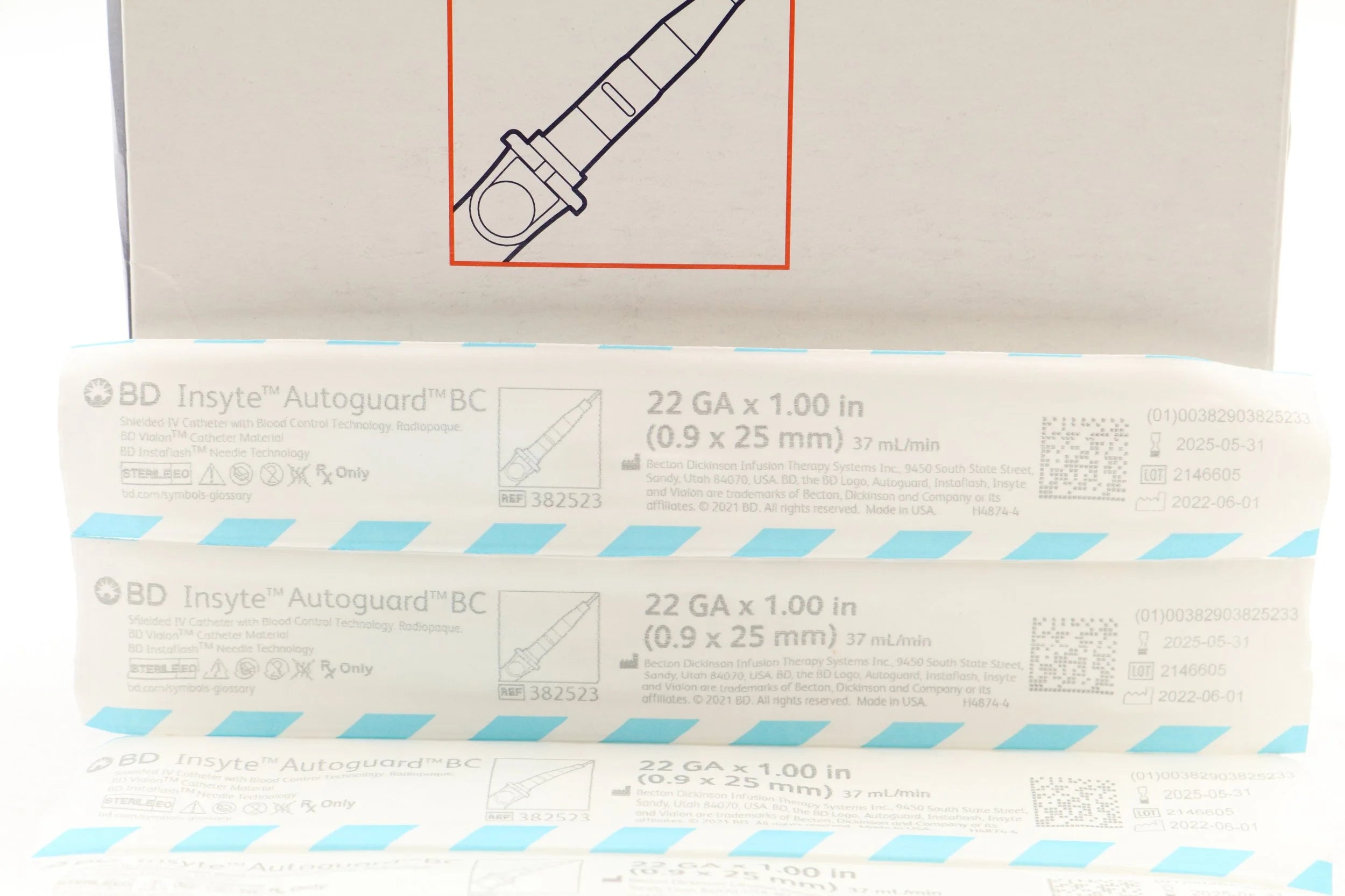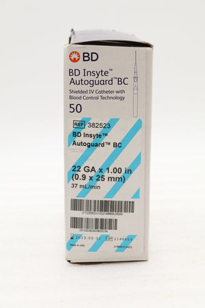 BD | 382523 | SHORT DATE | BOX OF 50 | Catheters, Insyte Autoguard, BC Shielded 22 G x 1 Inch, Straight, Non-Winged, Button Retracting Needle
