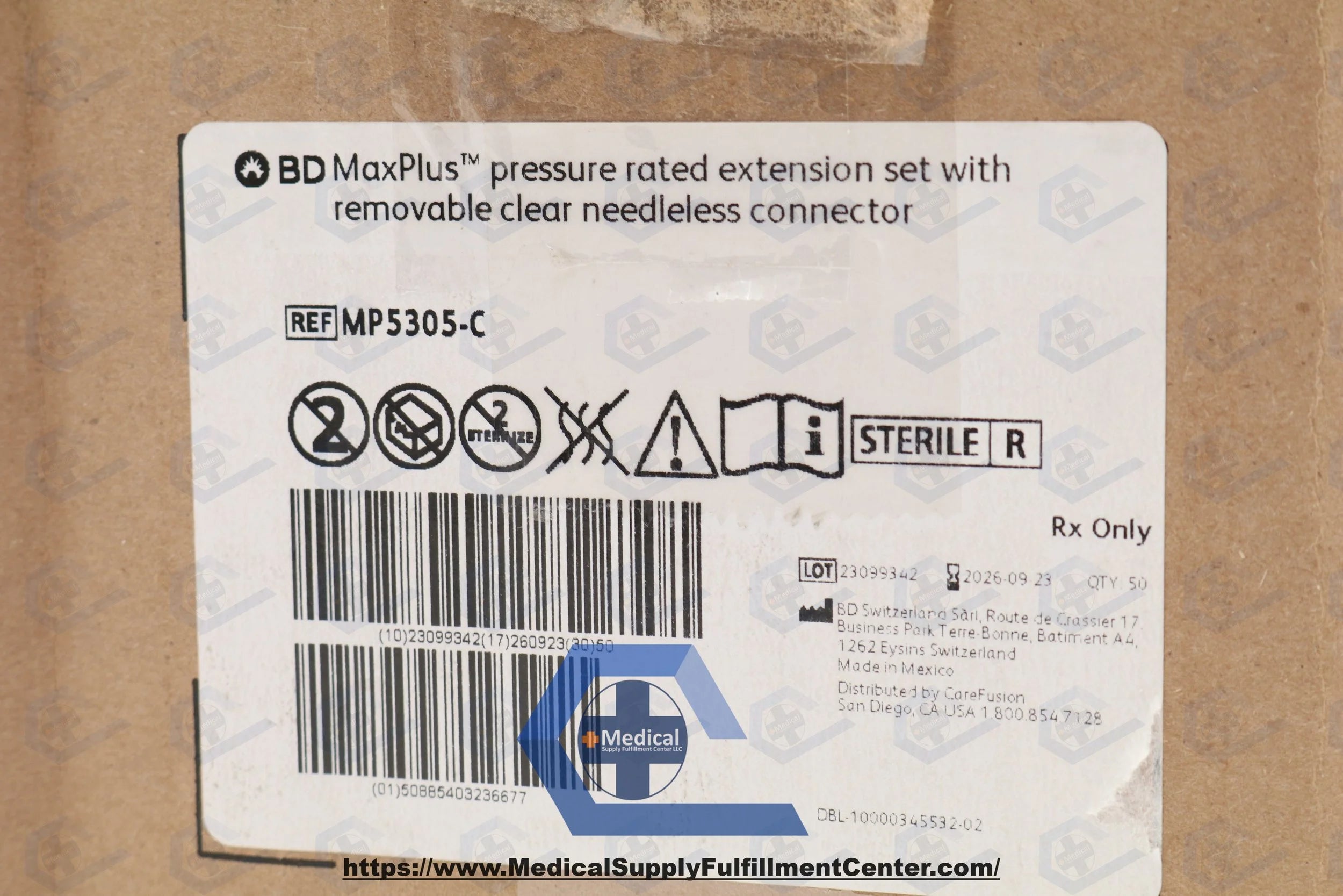 BD | MP5305-C | IN-DATE | BOX OF 50 | Pressure-Rated 7" Standard-Bore IV Extension Set with 0.7 mL Priming Volumeand Spin Male Luer Lock