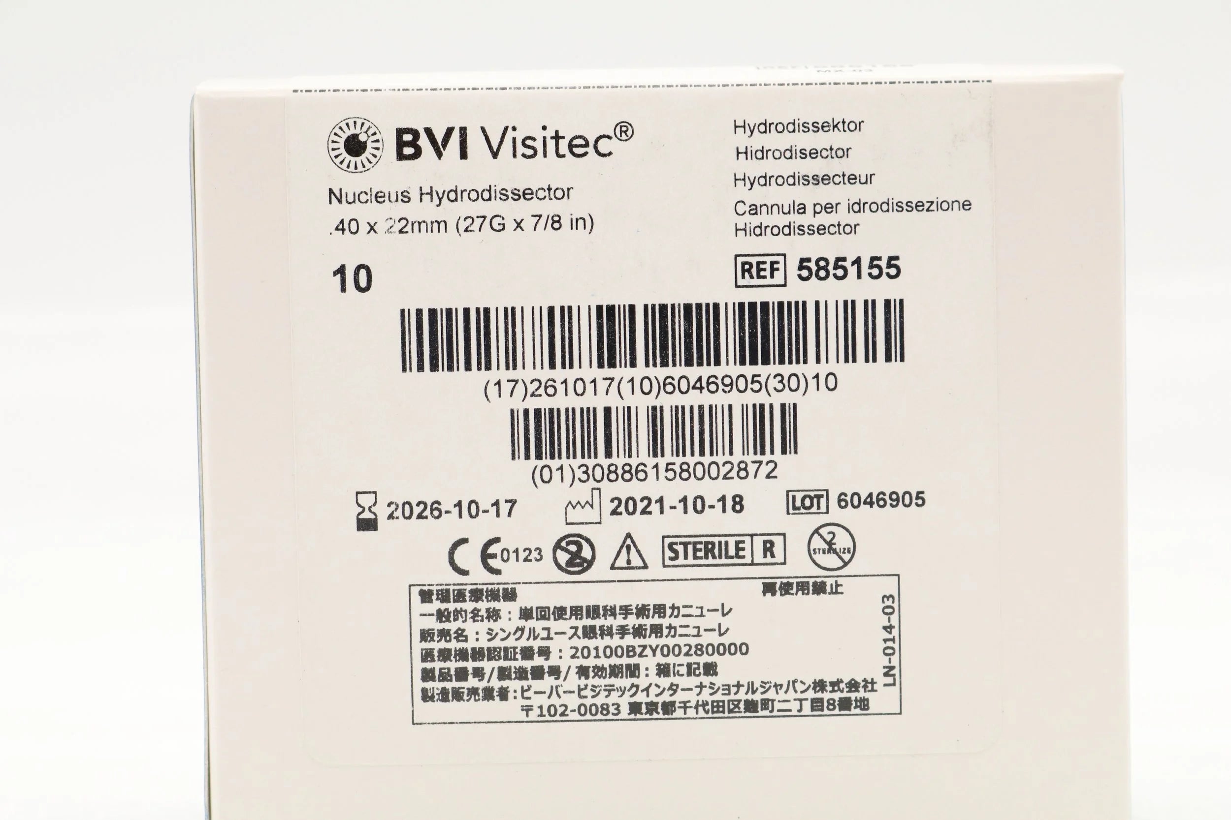 BVI Visitec 585155 Box of 10 Nucleus Hydrodissector .40 x 22mm (27G x 7/8in)
