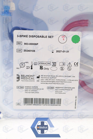 Belmont Medical Technologies | 903-00006P | SET, UNIVERSAL, 3 BAG, SPIKE, LUER, EACH