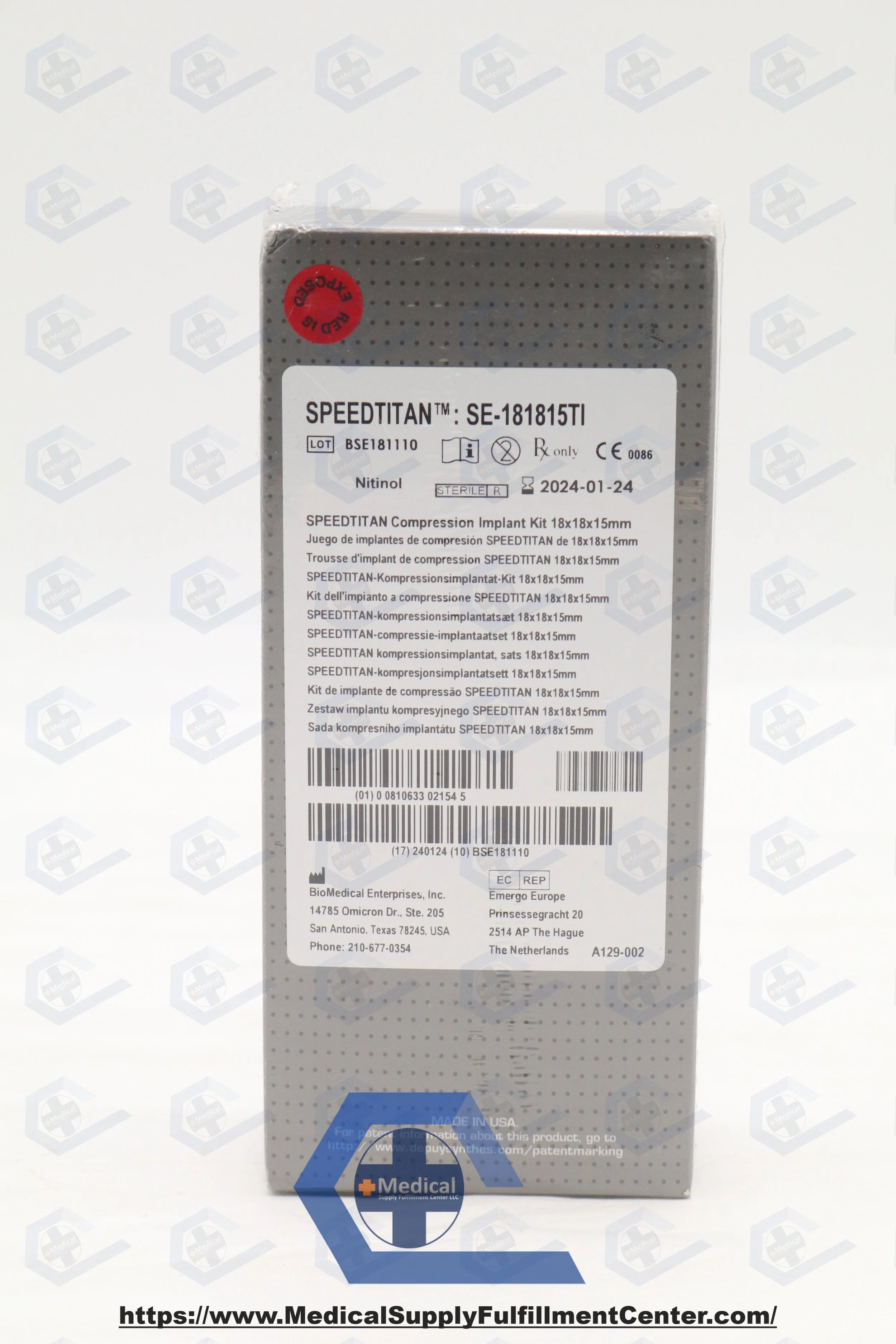 Biomedical Enterprises | SE-181815TI | Expired | Eaches | Synthes Speed TITAN Implant Kit 18x15x15mm