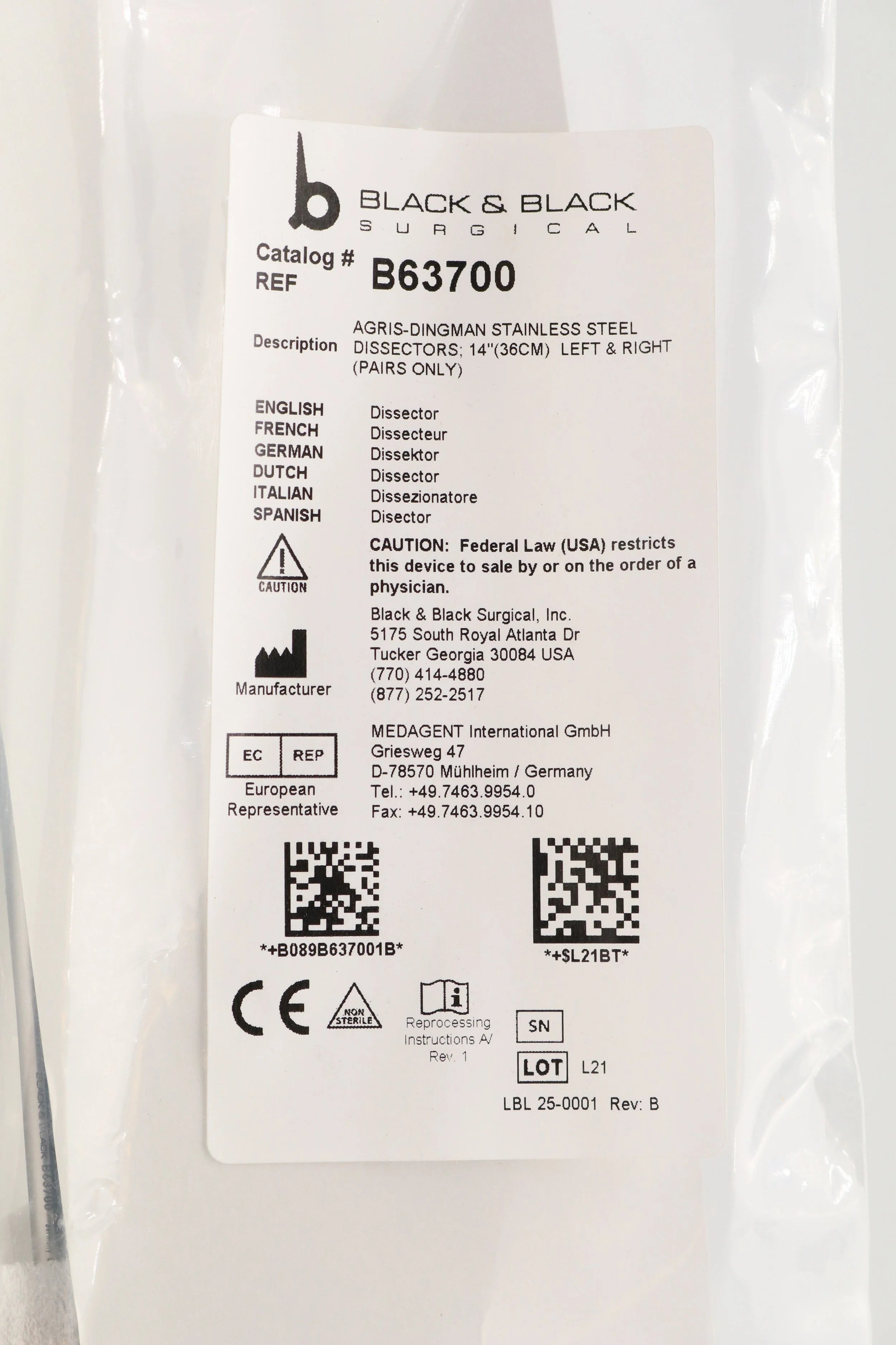 BLACK & BLACK | B63700 | NO DATE | EACHES | SURGICAL AGRIS-DINGMAN STAINLES STEEL DISSECTORS: 14" LEFT & RIGHT PAIR