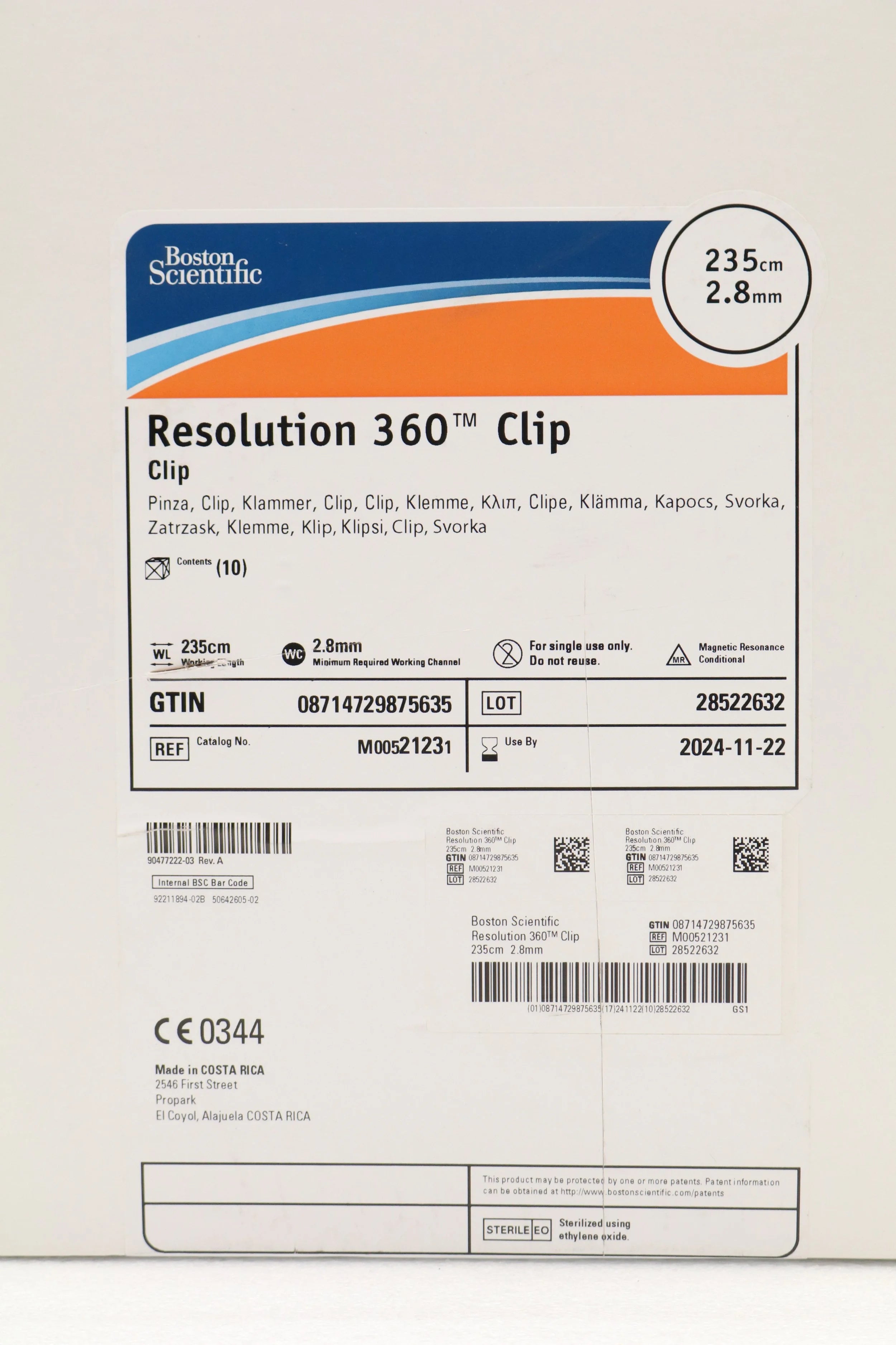 BOSTON SCIENTIFIC | 2123 | SHORTDATE | BOX OF 10 | M00521231 RESOLUTION 360 CLIP, 235CM WORKING LENGTH, 2.8MM MINIMUM REQUIRED WORKING CHANNEL