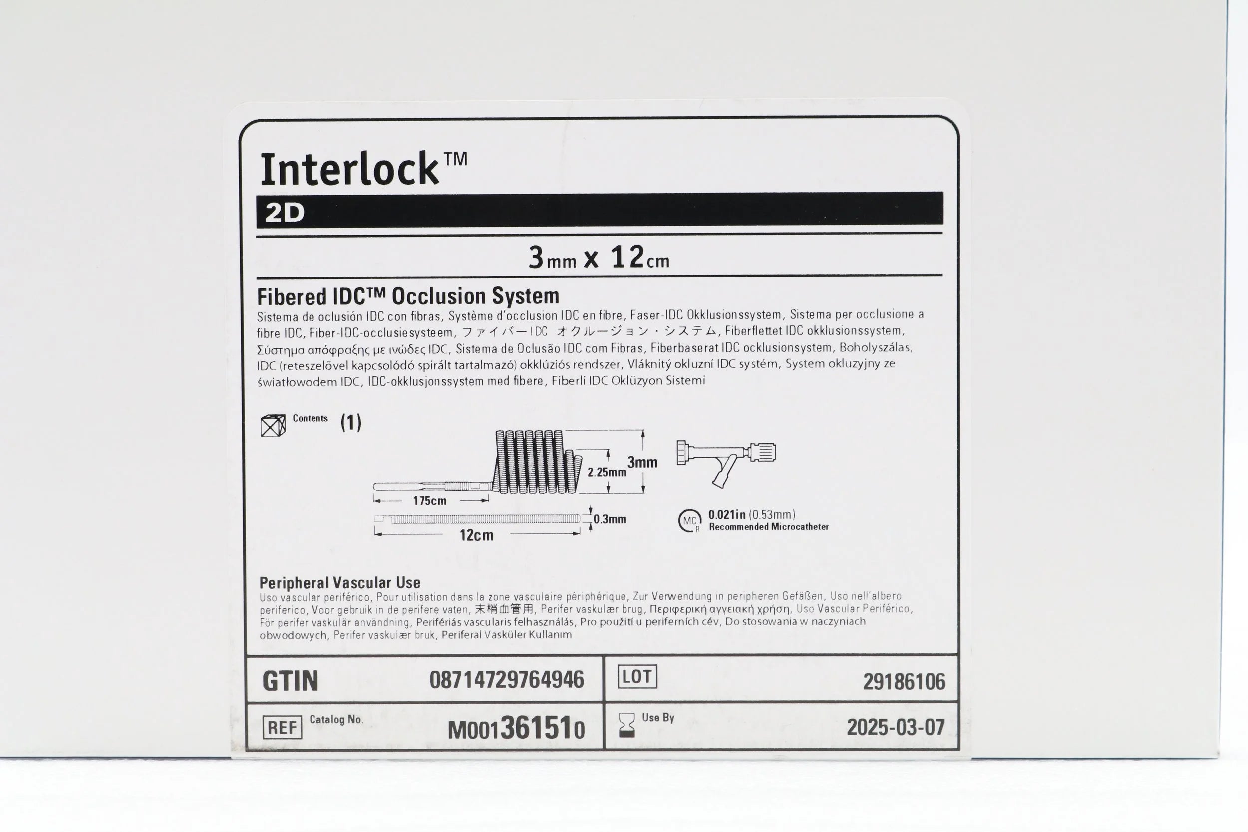 Boston Scientific 36151 M001361510 Interlock 2D Fibered IDC Occlusion System 3mm x 12cm