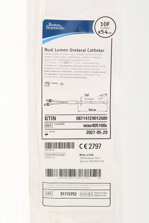 Boston Scientific | 405100 | IN-DATE | EACHES | M0064051000 Dual Lumen Ureteral Catheters - CATHETER, URET, 10FR, ANGLED TIP, C-FLEX