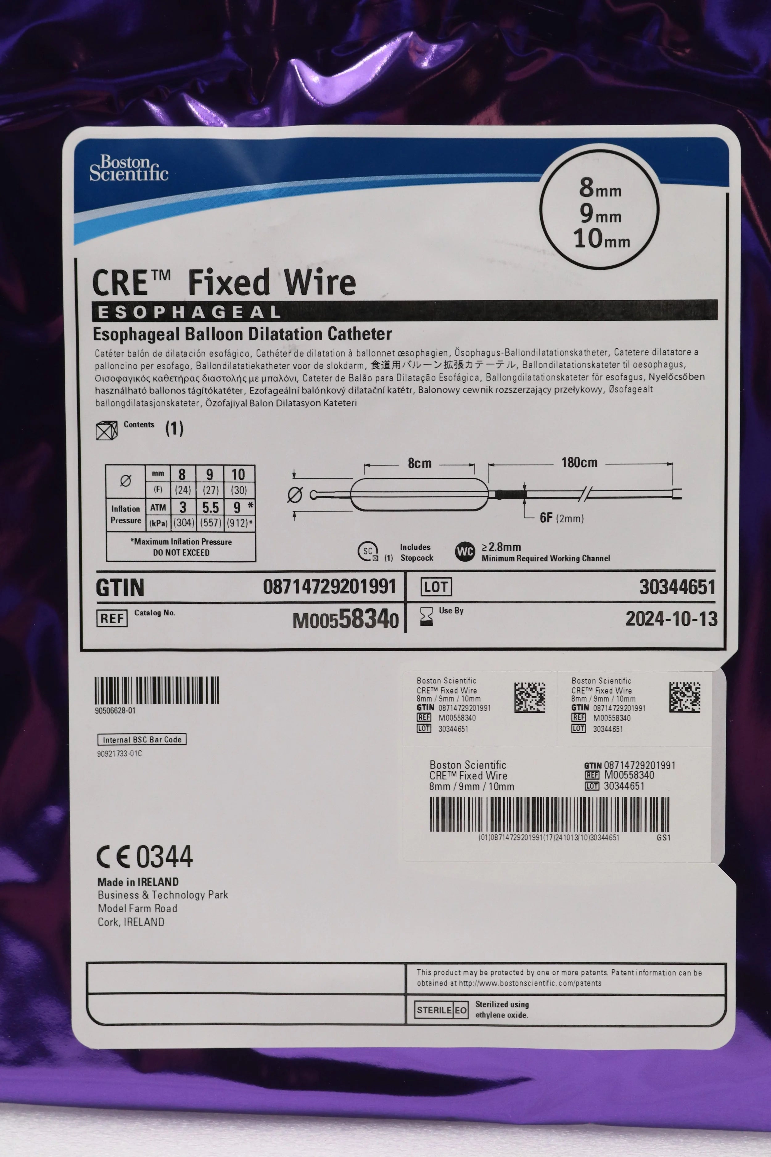 Boston Scientific | 5834 | CRE FIXED WIRE ESOPHAGEAL BALLOON DILATATION CATHETER, 8CM X 180CM (8MM, 9MM, 10MM) (M00558340)