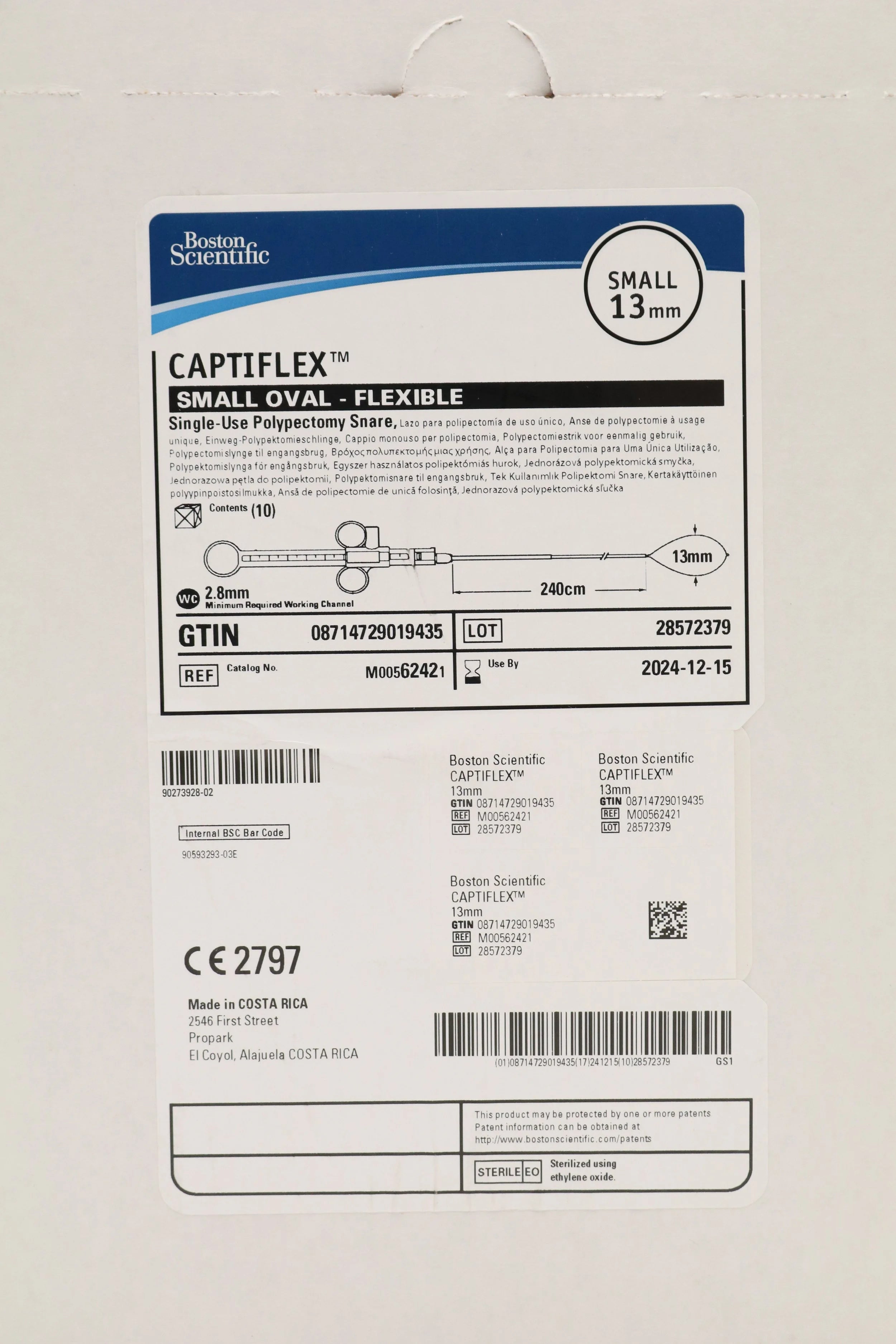 BOSTON SCIENTIFIC | 6242 | EXPIRED | BOX OF 10 | CAPTIFLEX SMALL OVAL-FLEXIBLE POLYPECTOMY SNARE, 13MM (M00562420)