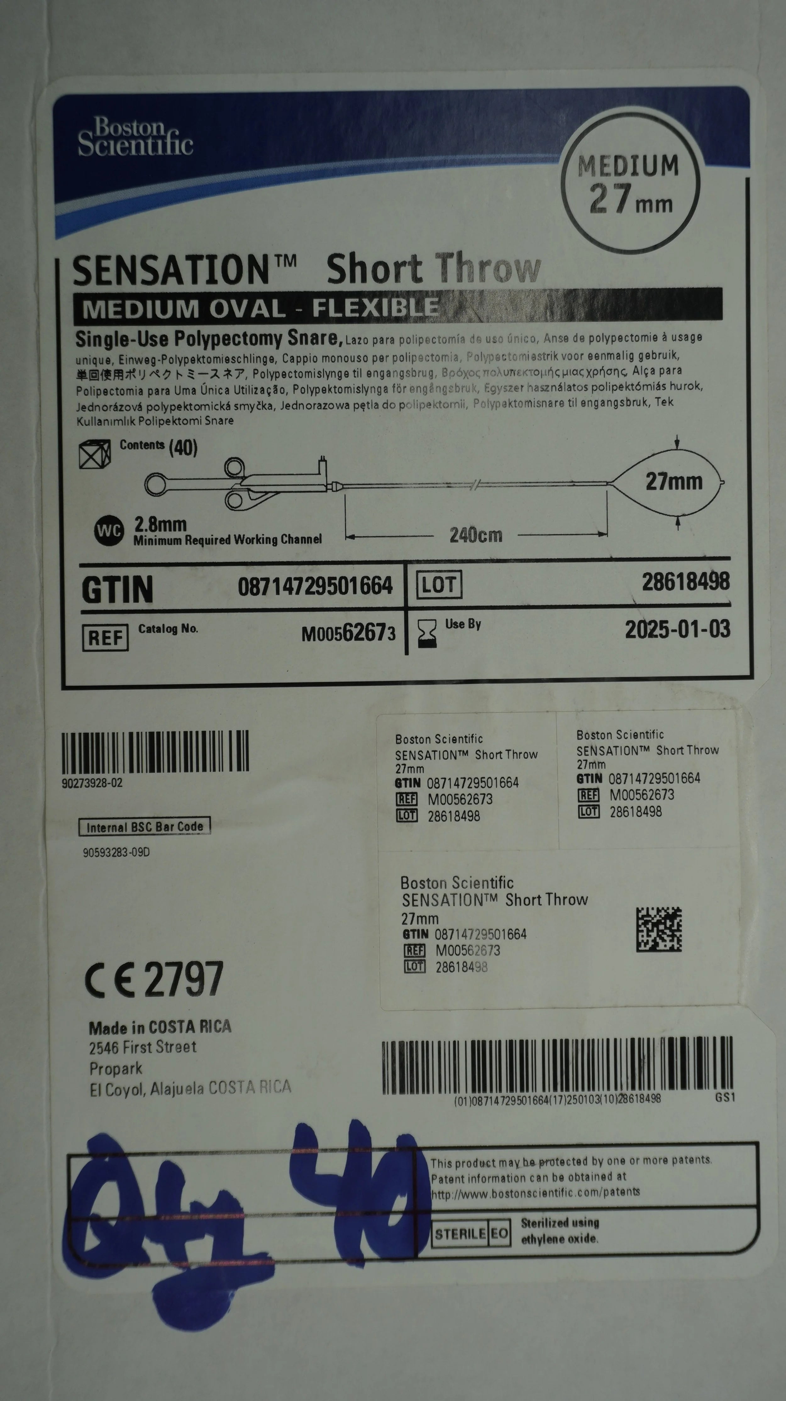Boston Scientific | 6267 | SENSATION SHORT THROW, MEDIUM OVAL, FLEXIBLE, POLYPECTOMY SNARE, MEDIUM 27MM (M00562670)