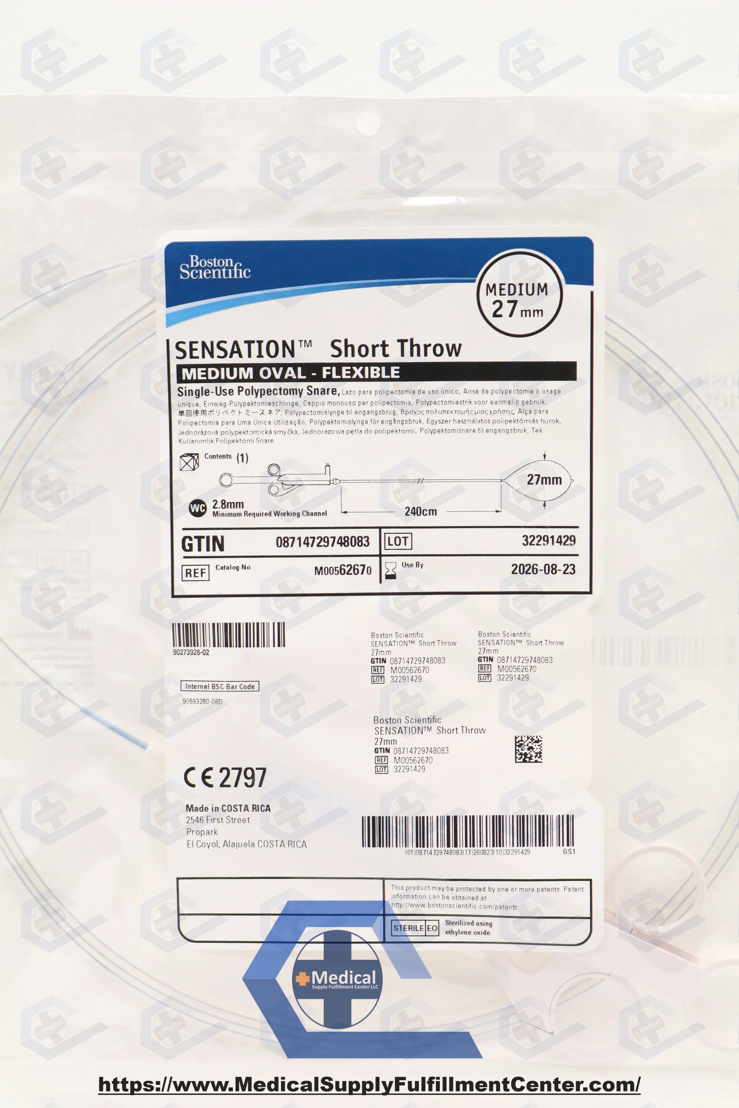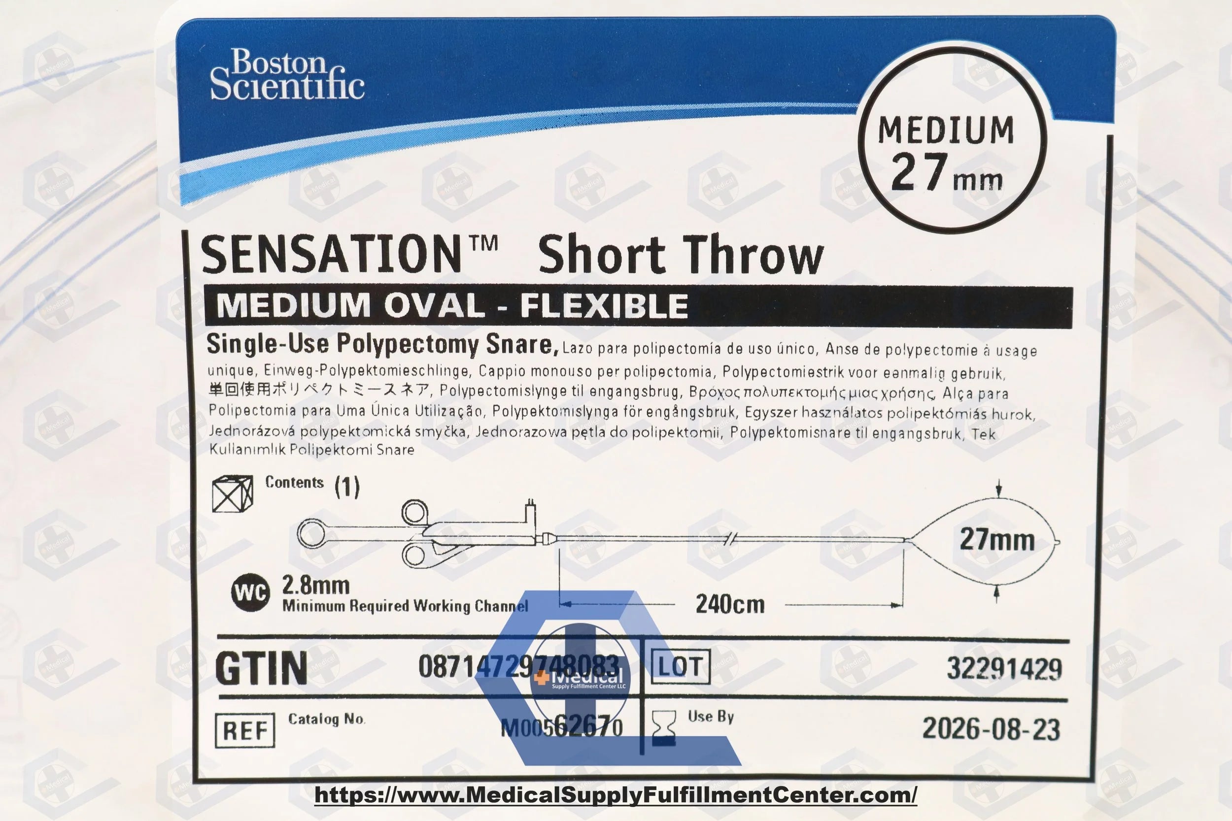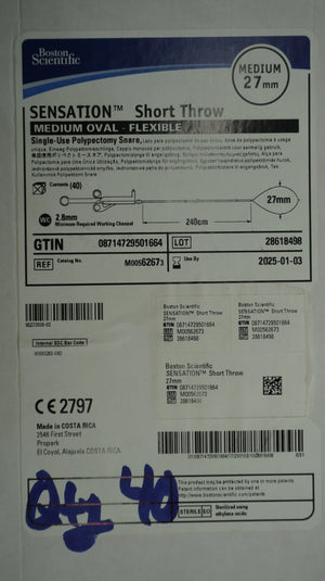 Boston Scientific | 6267 | Eaches | SENSATION SHORT THROW, MEDIUM OVAL, FLEXIBLE, POLYPECTOMY SNARE, MEDIUM 27MM (M00562670)