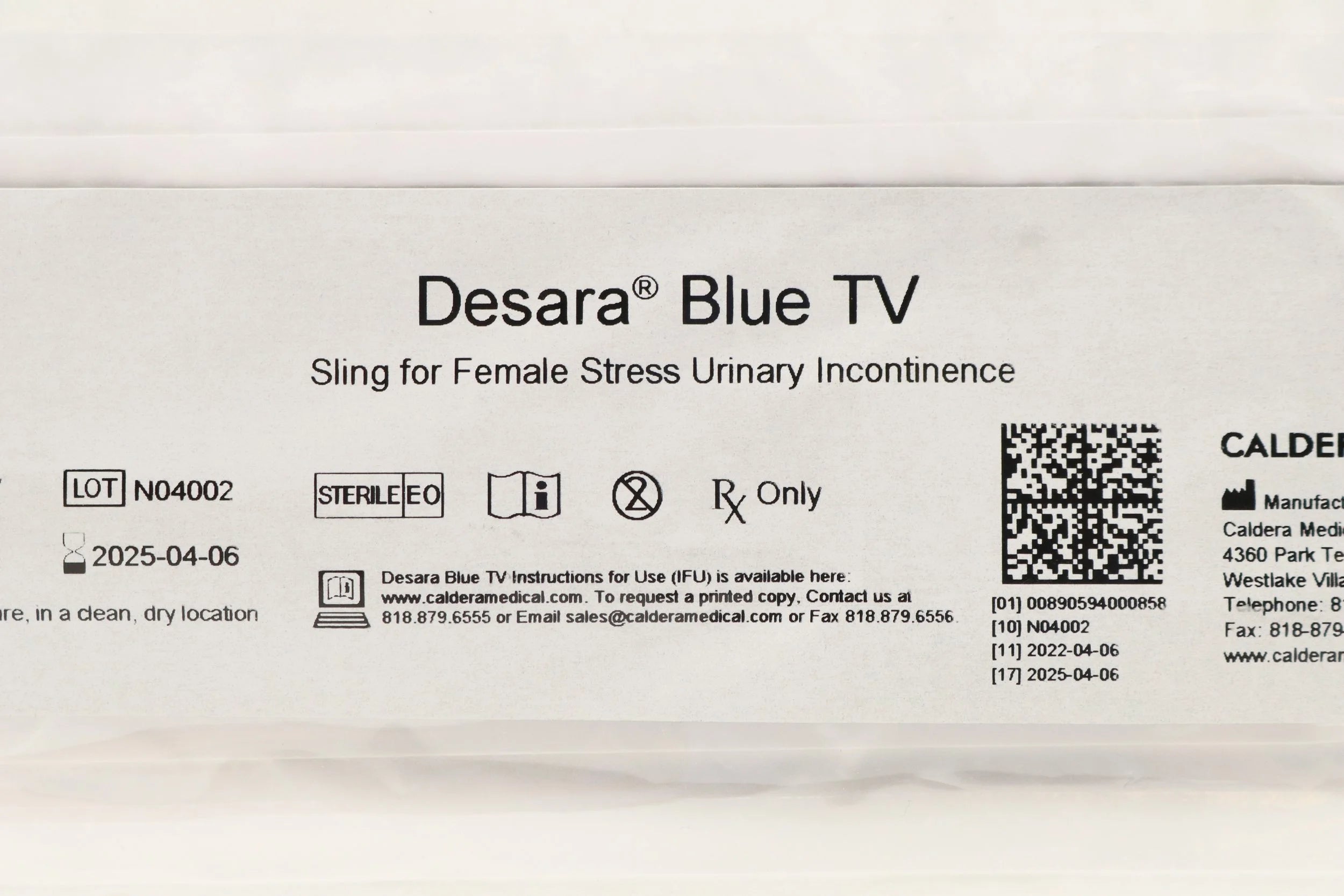 CALDERA MEDICAL CAL-DS01BTV SHORT DATE DESARA BLUE TV BLUE SLING WITH DILATOR TUBE FOR FEMALE STRESS URINARY INCONTINENCE, 1.1CM X 45CM
