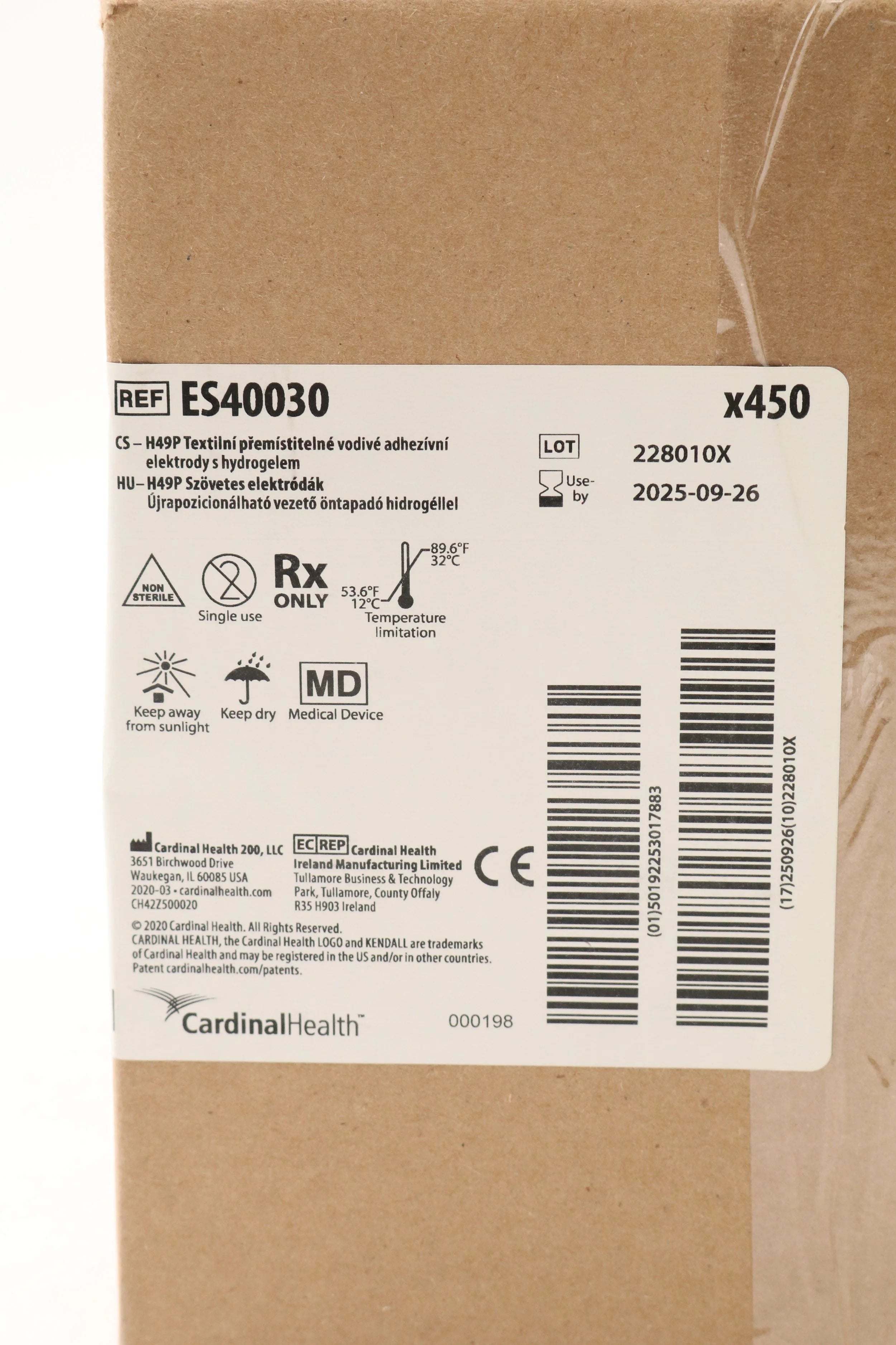 Cardinal Health | ES40030 | SHORT DATE | CASE OF 450 | ELECTRODE, ECG, SNAP, REPOSITION CLOTH, GEL