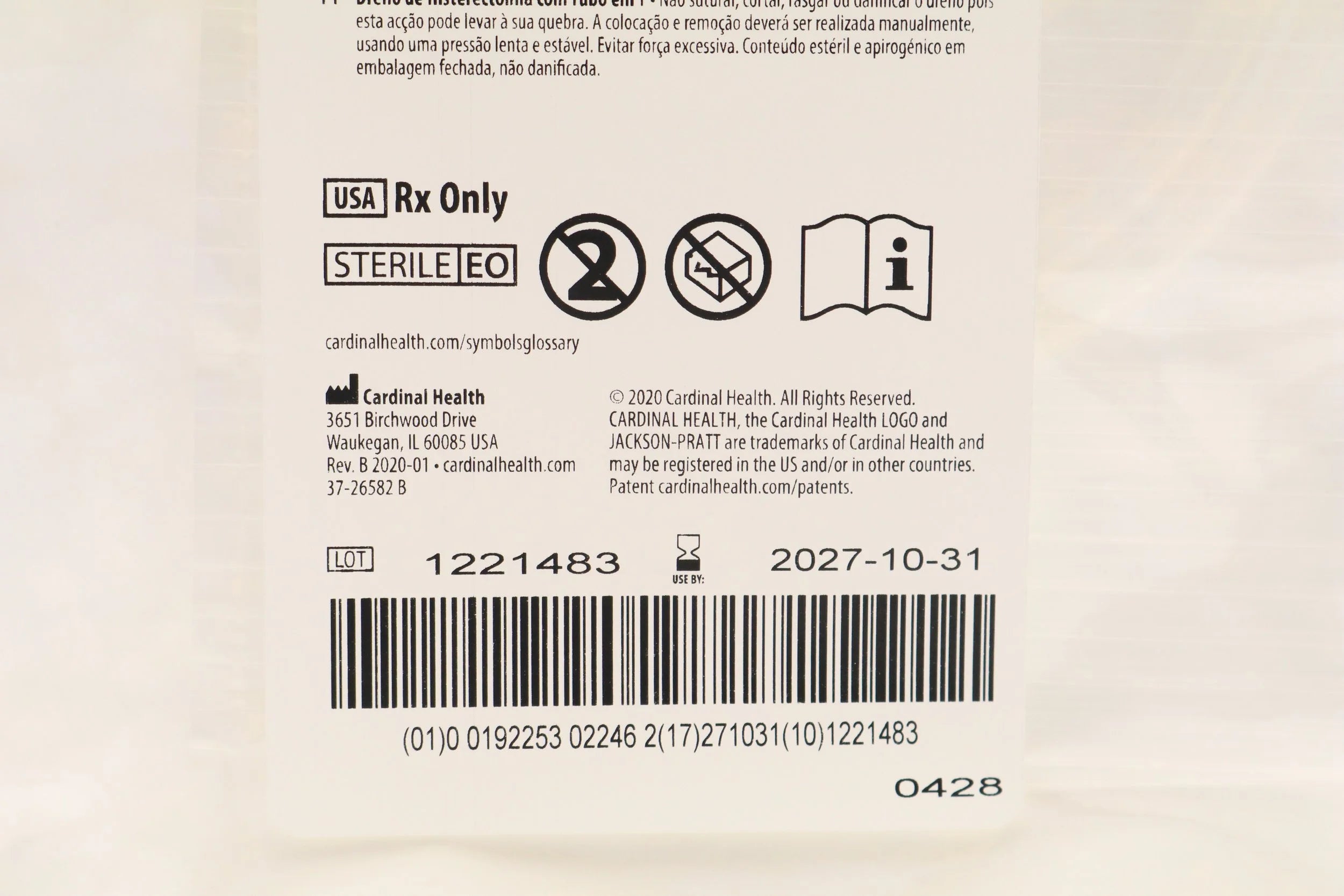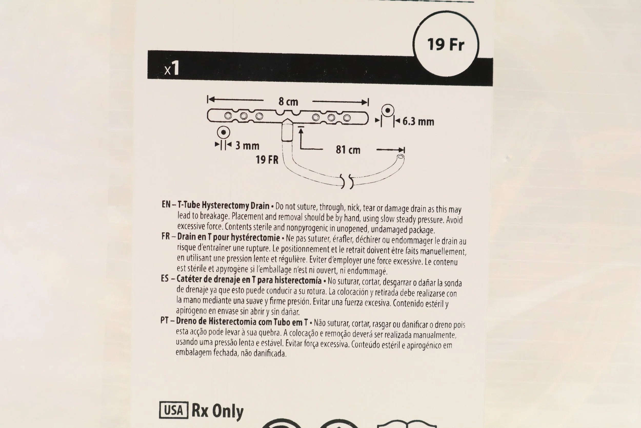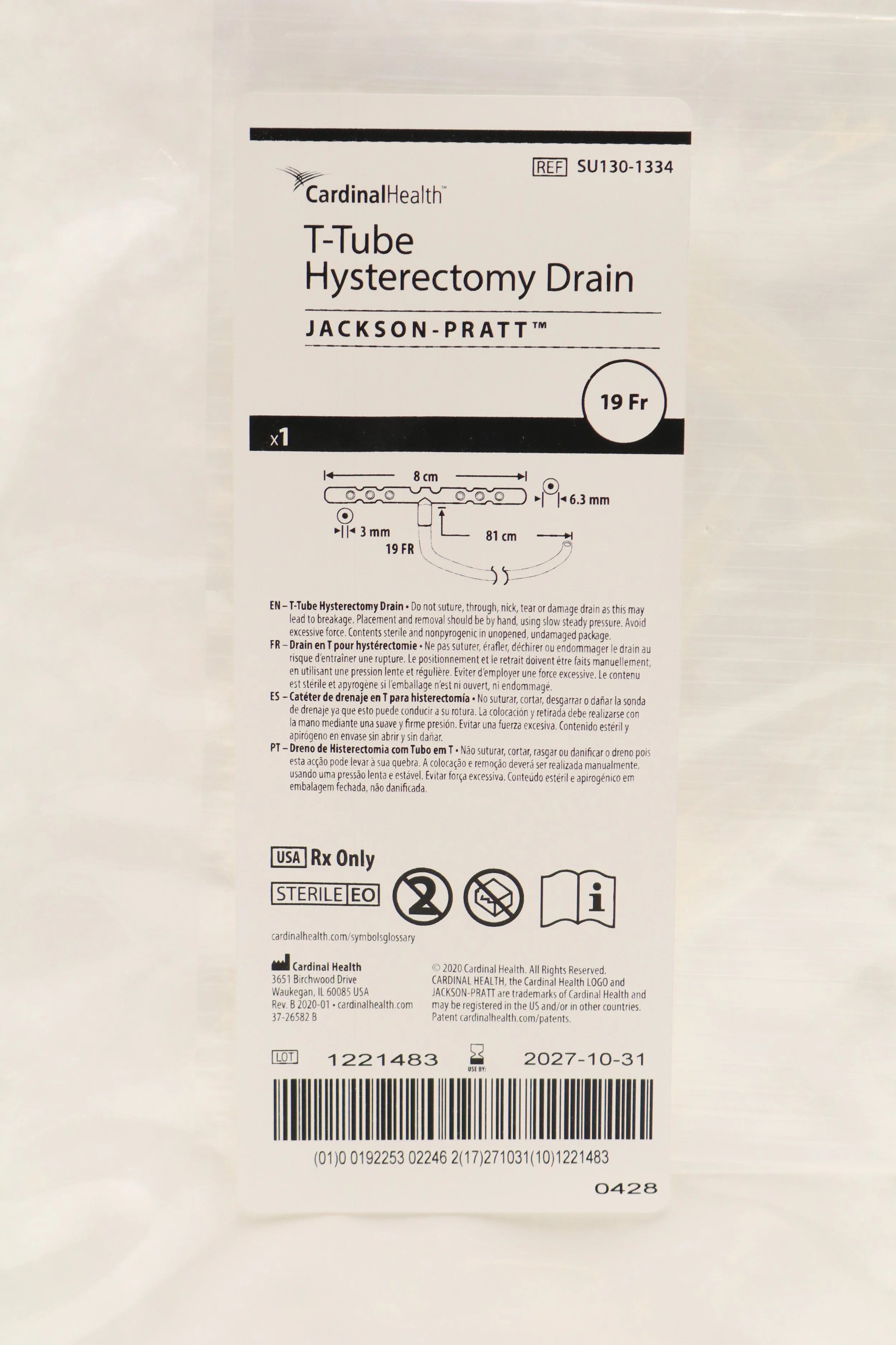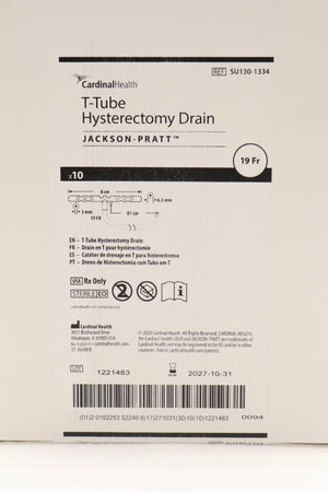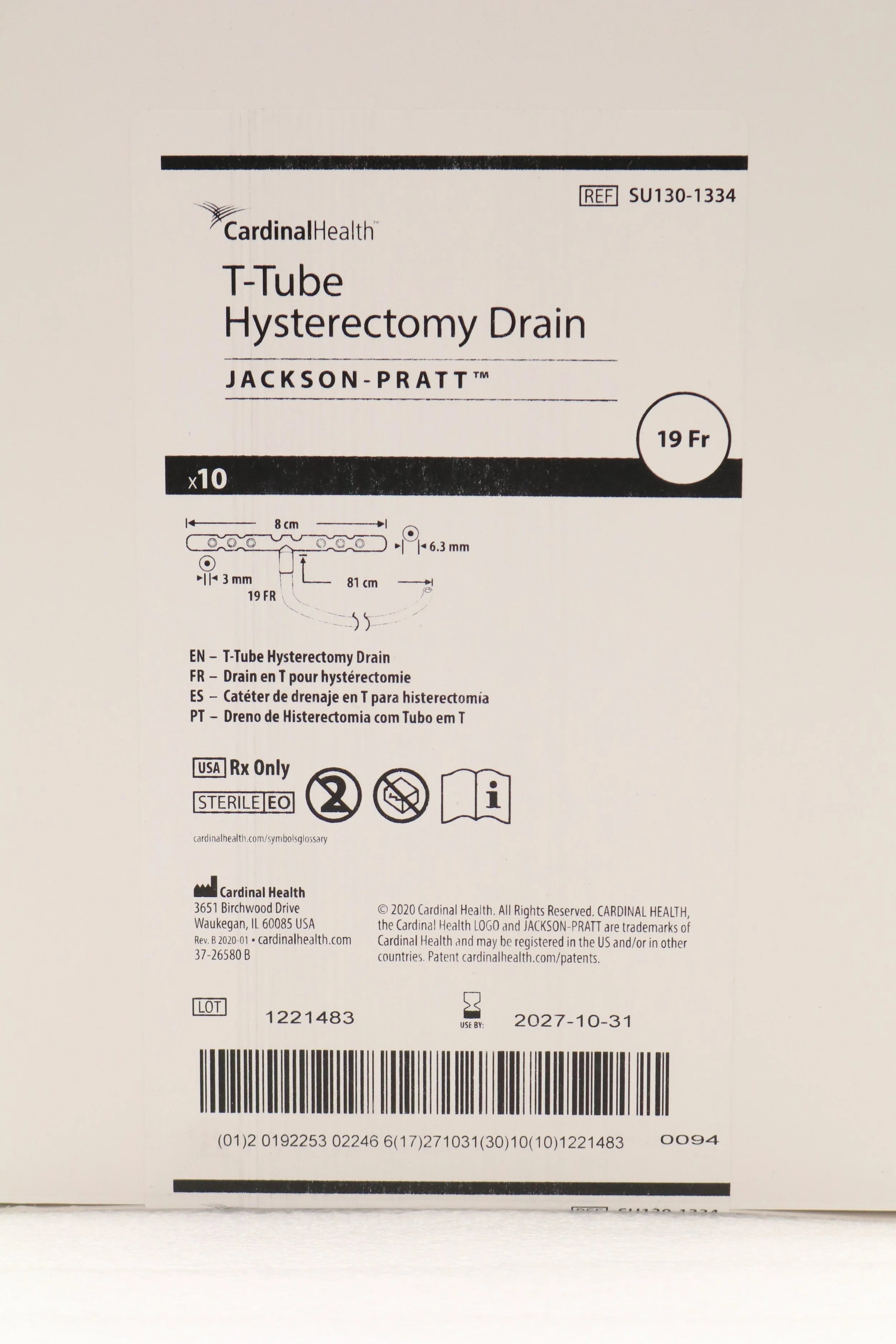 CARDINAL HEALTH SU130-1334 BOX OF 10 T-Tube Hysterectomy Drain, Jackson-Pratt 19Fr