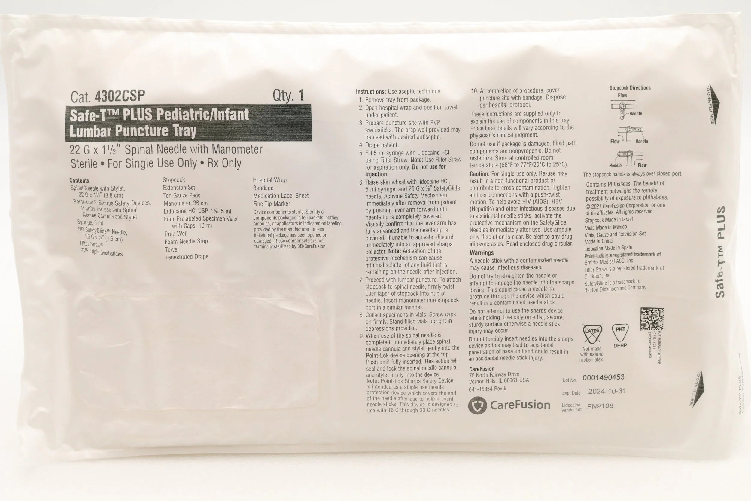 Carefusion | 4302CSP | Safe-T Plus Pediatric Lumbar Puncture Tray