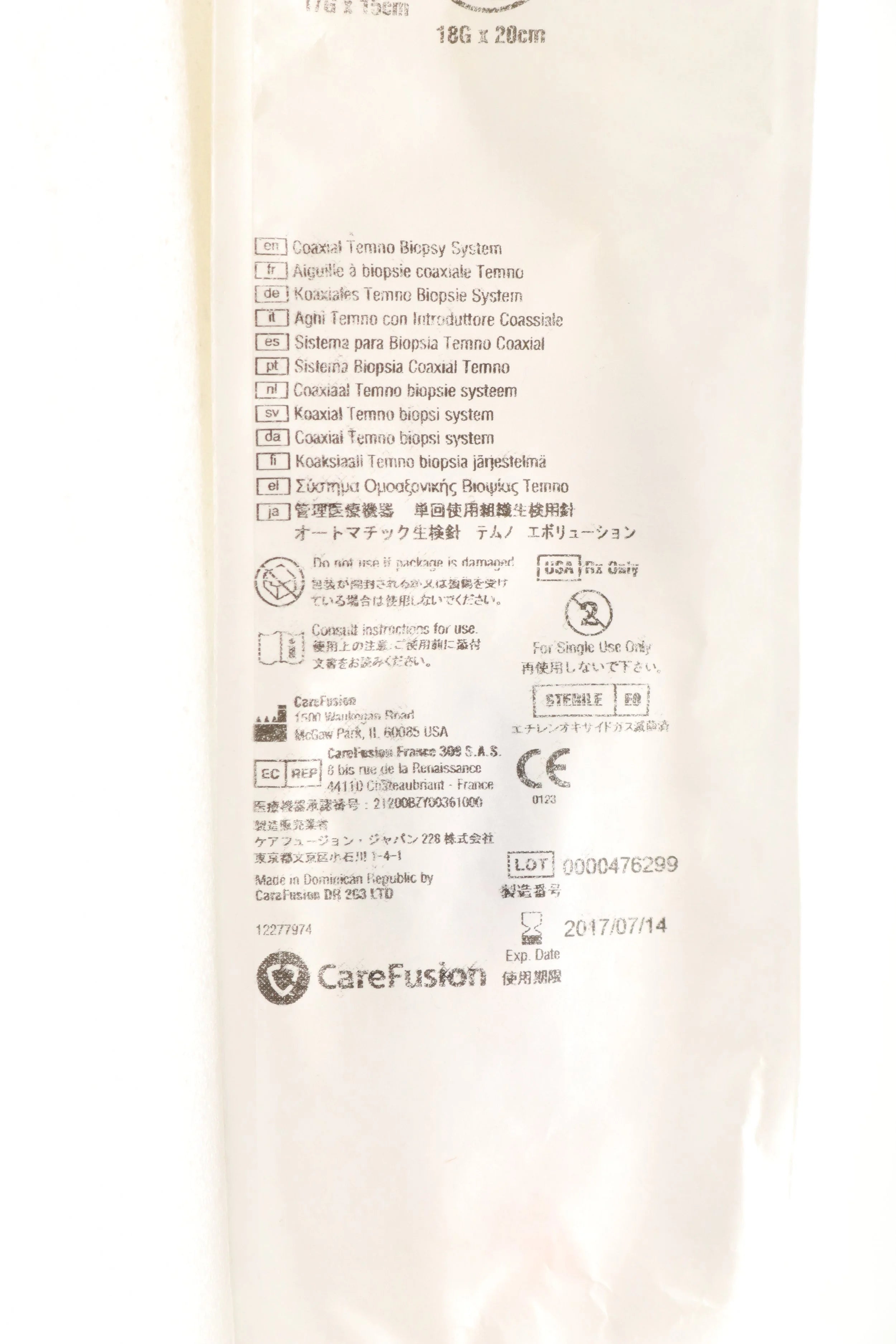 Carefusion | CTT1820 | EXPIRED | EACHES | NEEDLE BIOPSY COAX W/INTRODUCER 18GX20CM