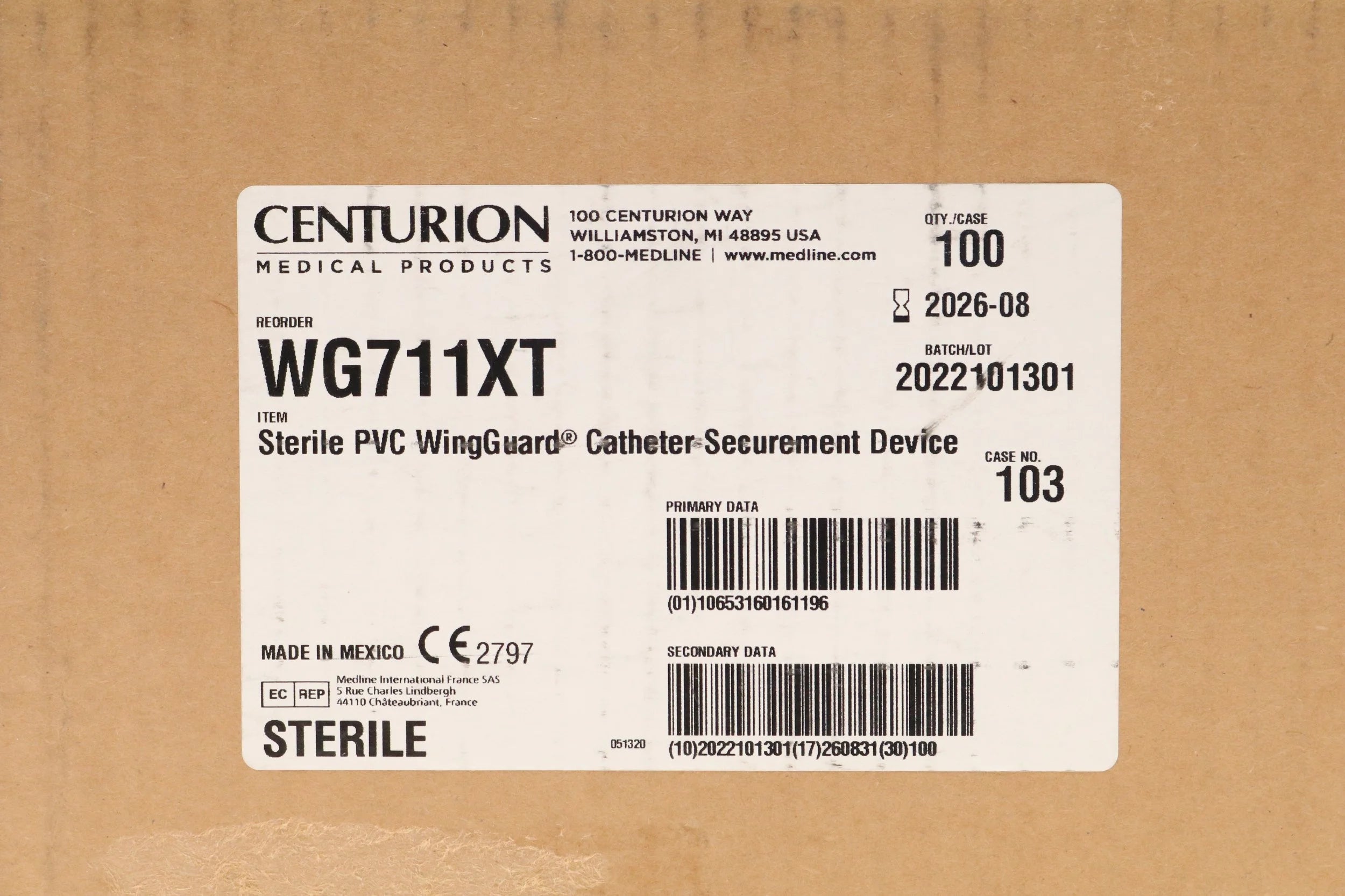 CENTURION | WG711XT | NO DATE | CASE OF 100 | WingGuard PICC Catheter Securement Device PVC Foam Base 2-1/2x1-1/2"
