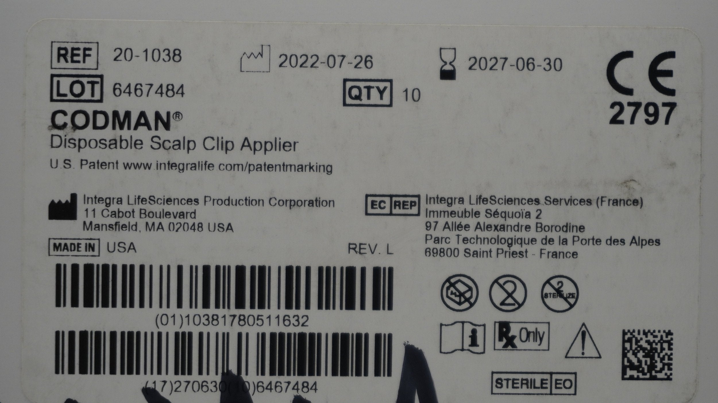 CODMAN | 20-1038 | IN-DATE | BOX OF 10 | Disposable Scalp Clip Applier Clip Appliers