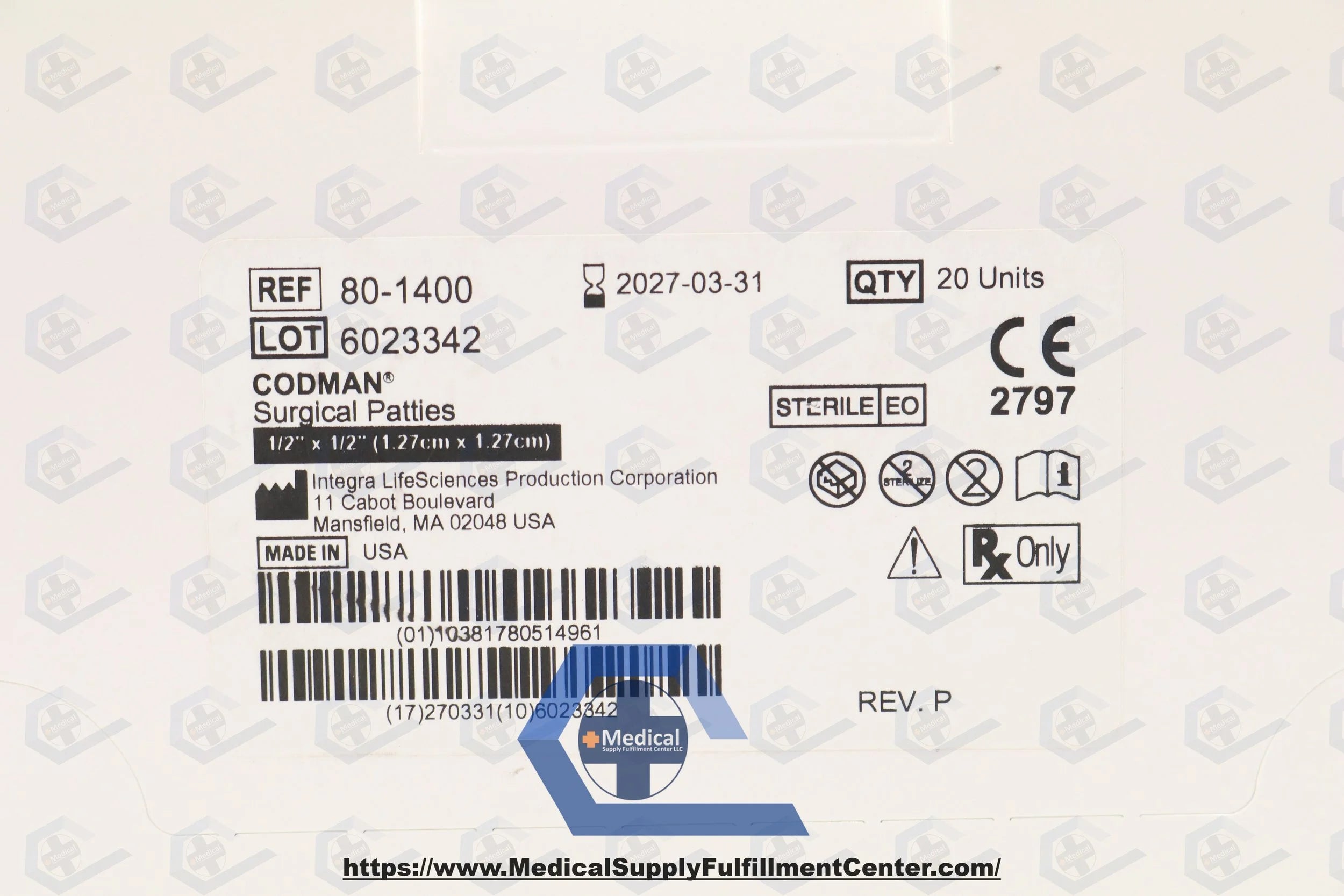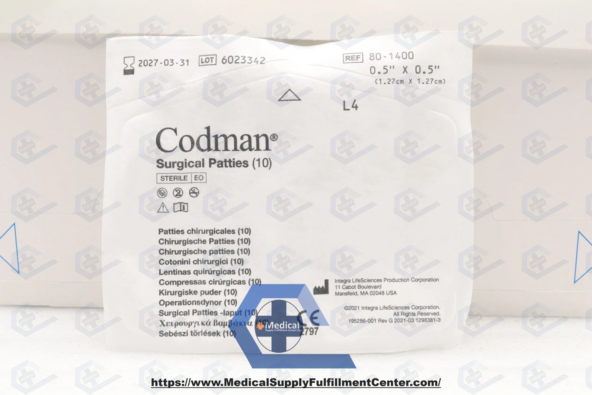 Codman | 80-1400 | IN DATE | BOX OF 20 | Surgical Patties 0.5in x 0.5in