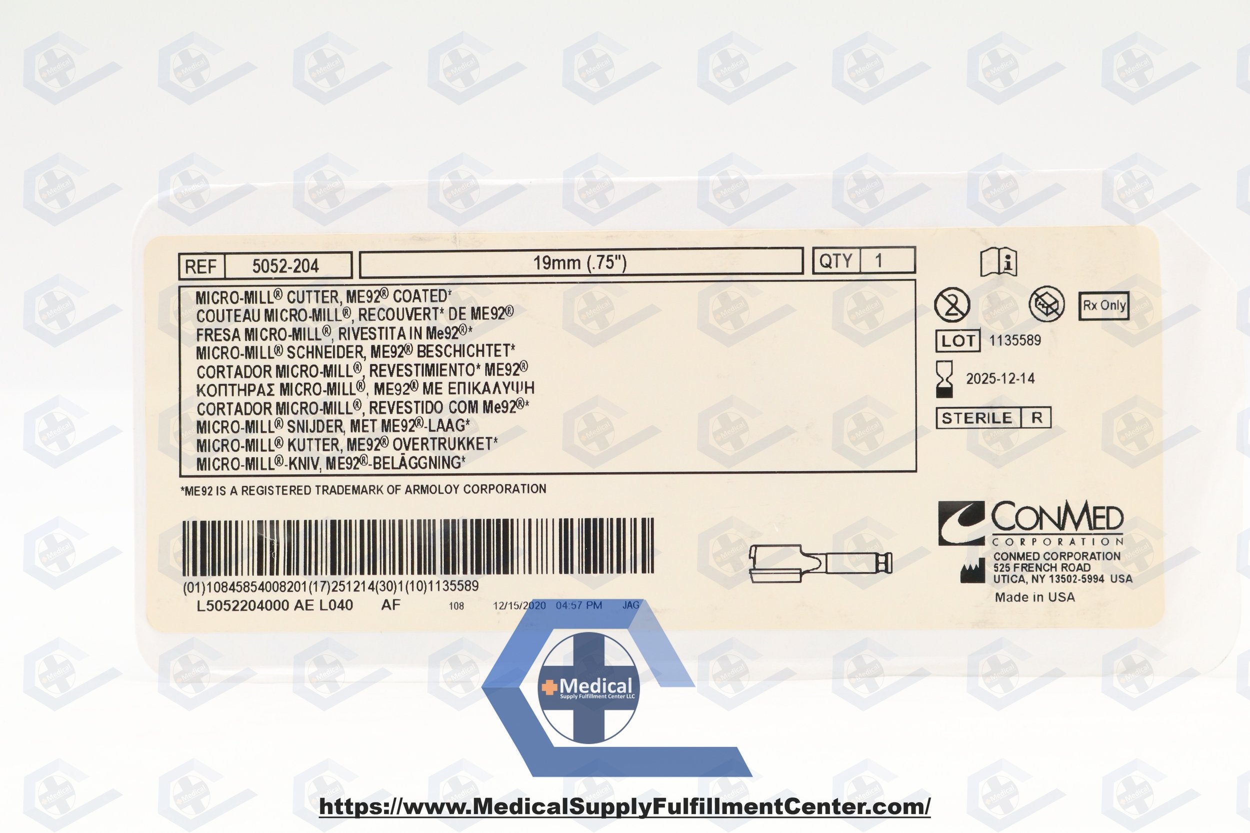 CONMED | 5052-204 | SHORT DATE | EACHES | Micro-Mill Cutter, Size 0.75 in., Me92 Coated