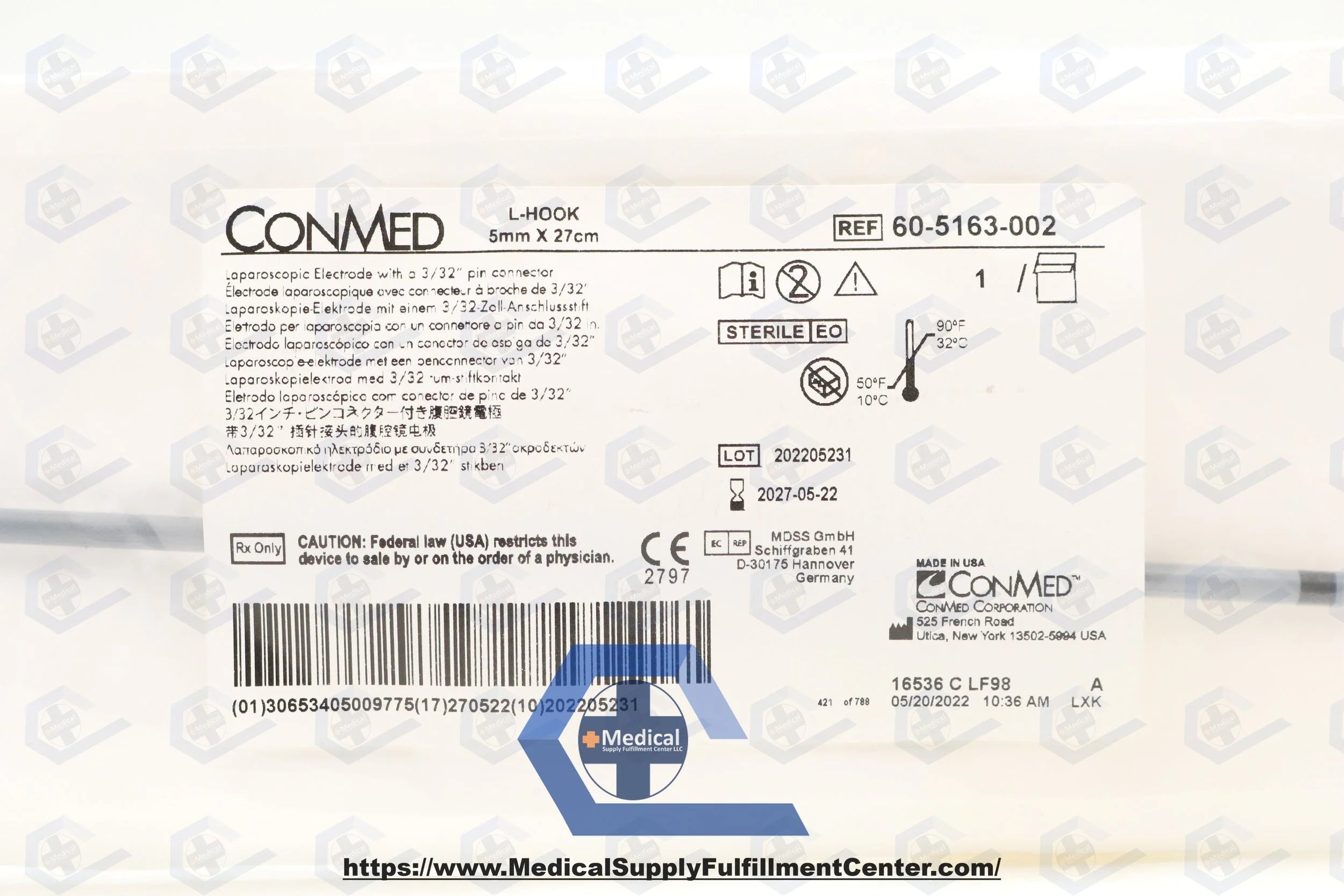 Conmed | 60-5163-002 | INDATE | EACHES | Laparoscopic Electrode, L Hook, Sterile, Disposable, 27 cm