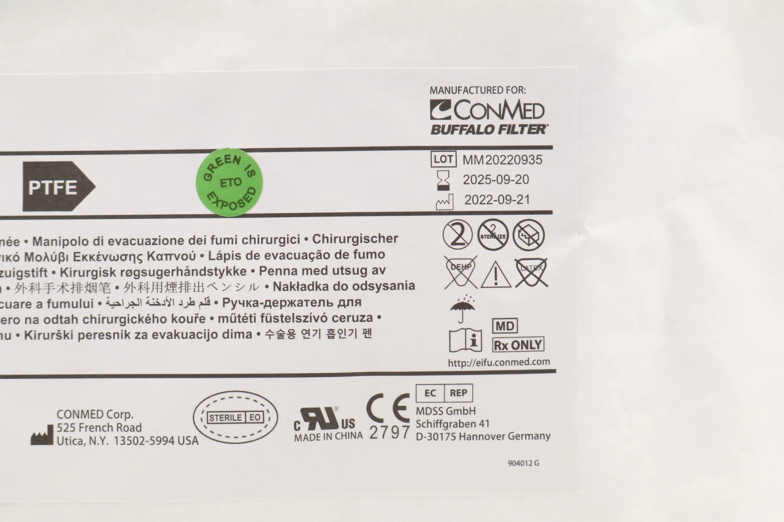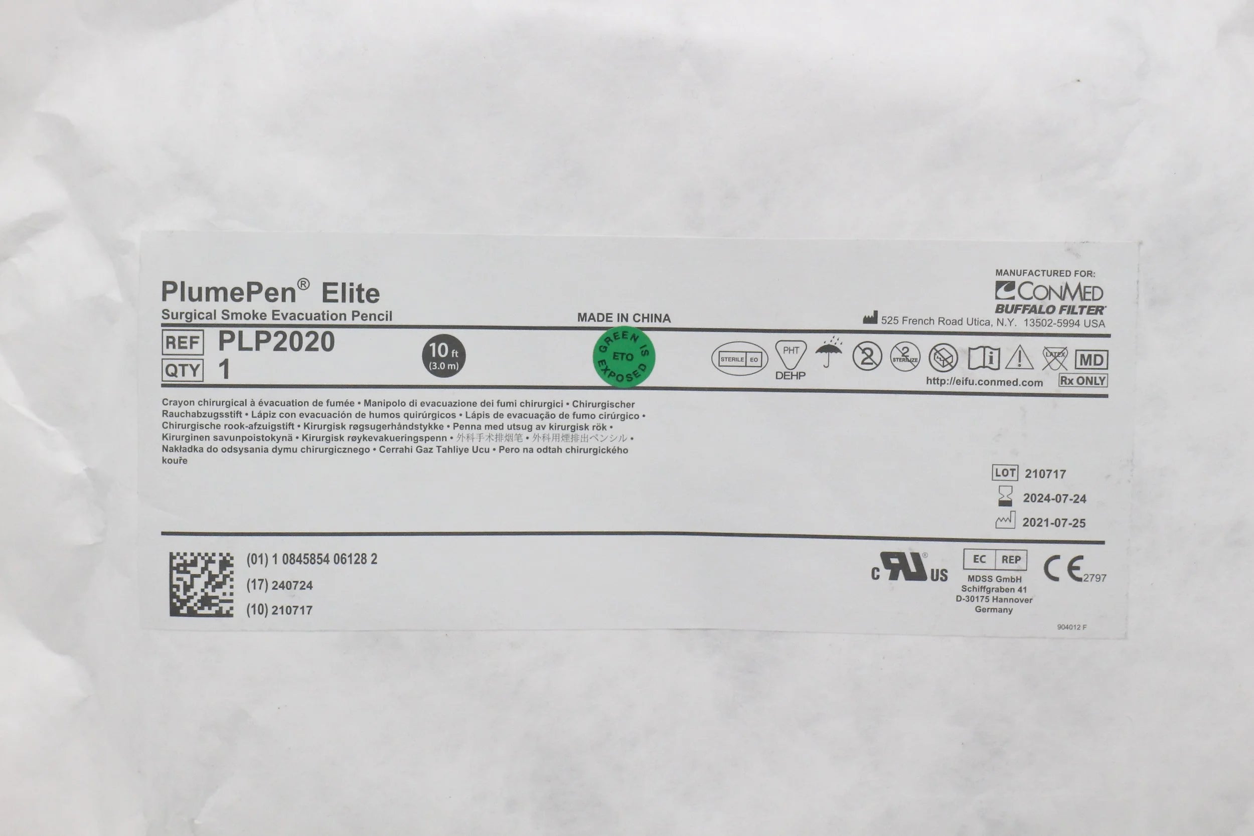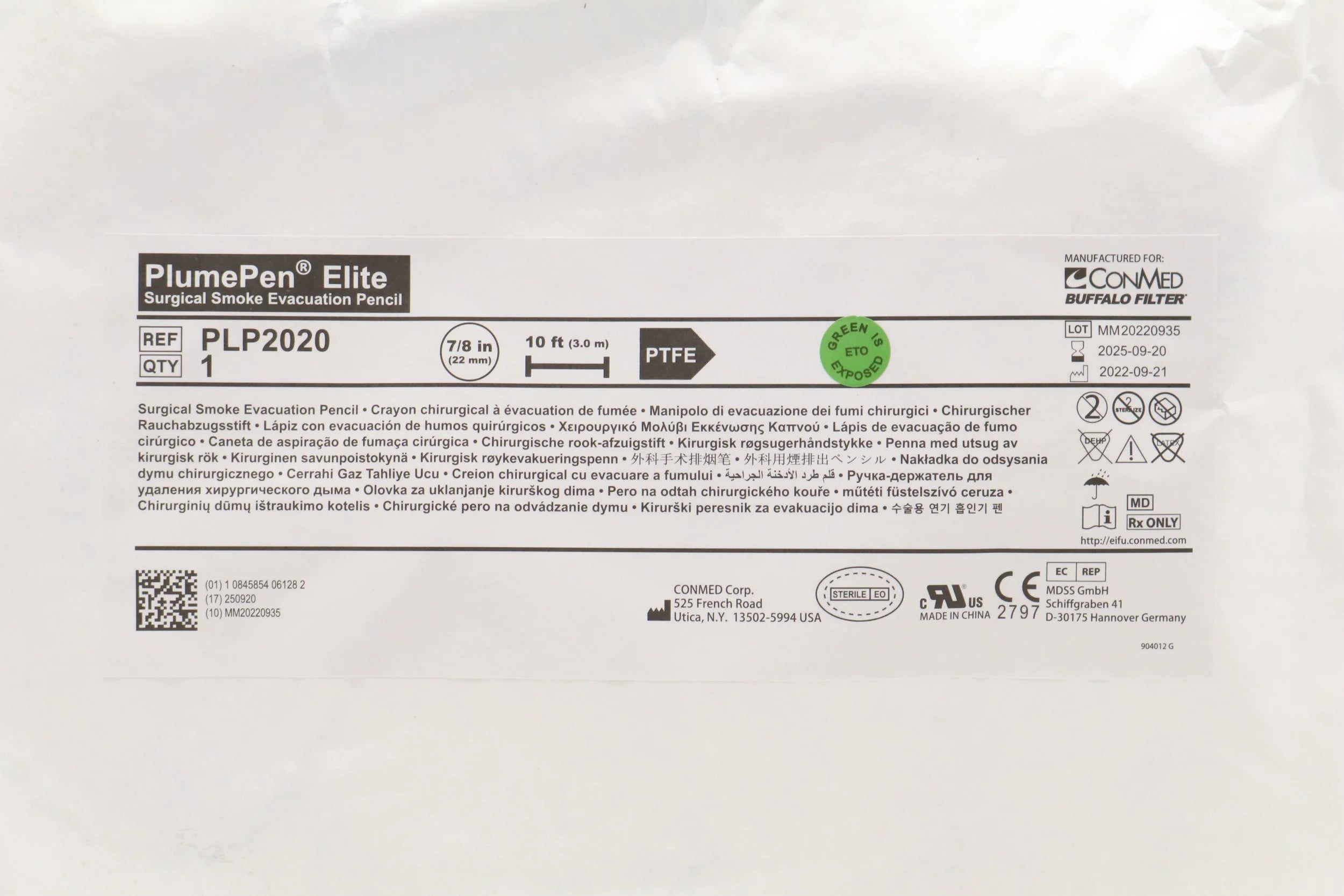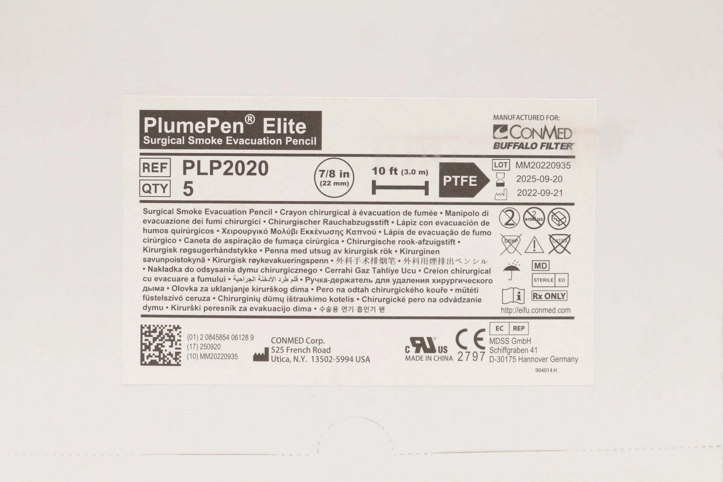 ConMed | PLP2020 | SHORT DATE | BOX OF 5 | Buffalo Filter PlumePen Elite Non-Stick w/10' Tubing