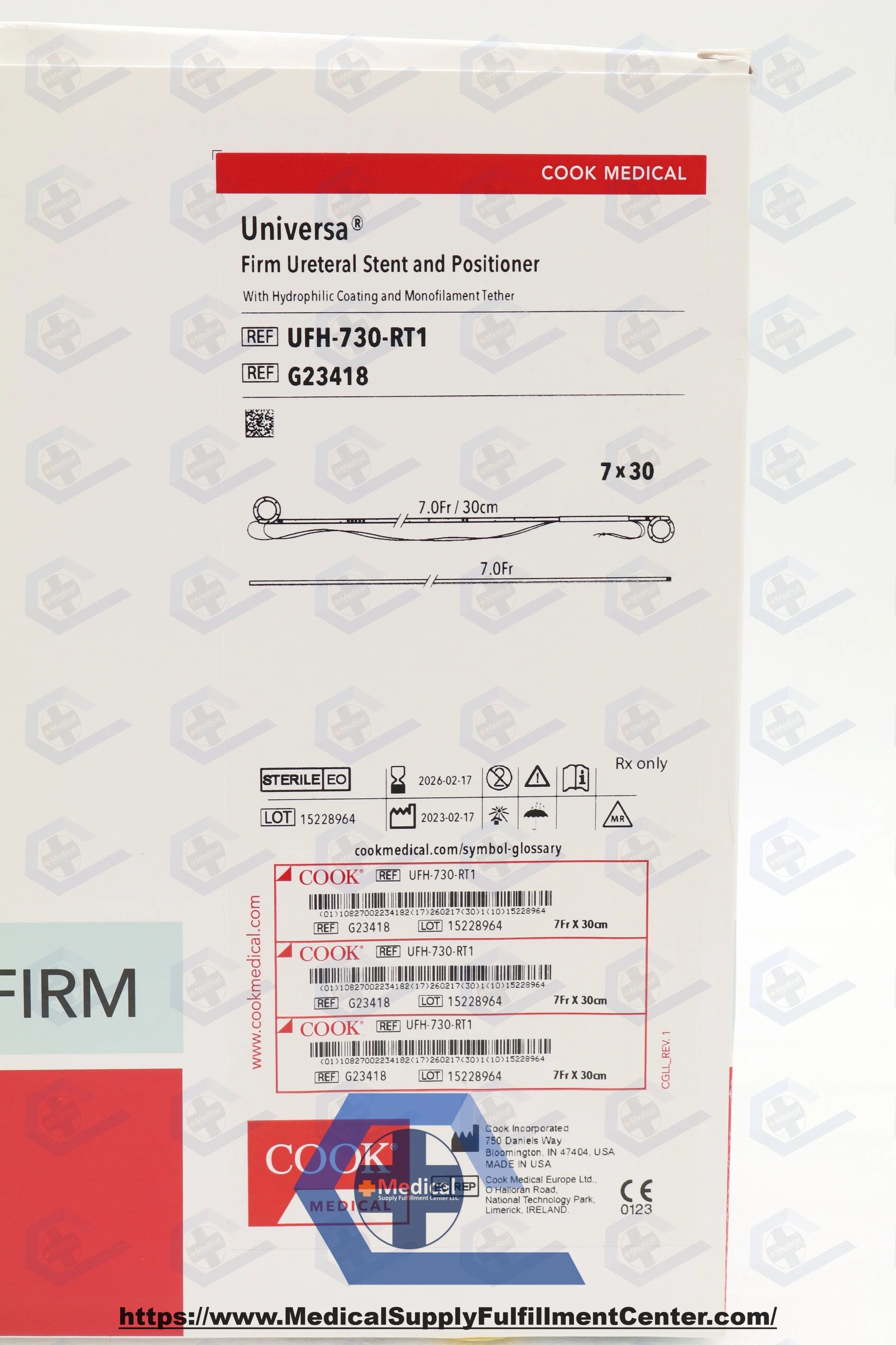 Cook | G23418 | IN DATE | Eaches | UFH-730-RT1 Firm Ureteral Stent Set with Hydrophilic Coating and Monofilament Tether