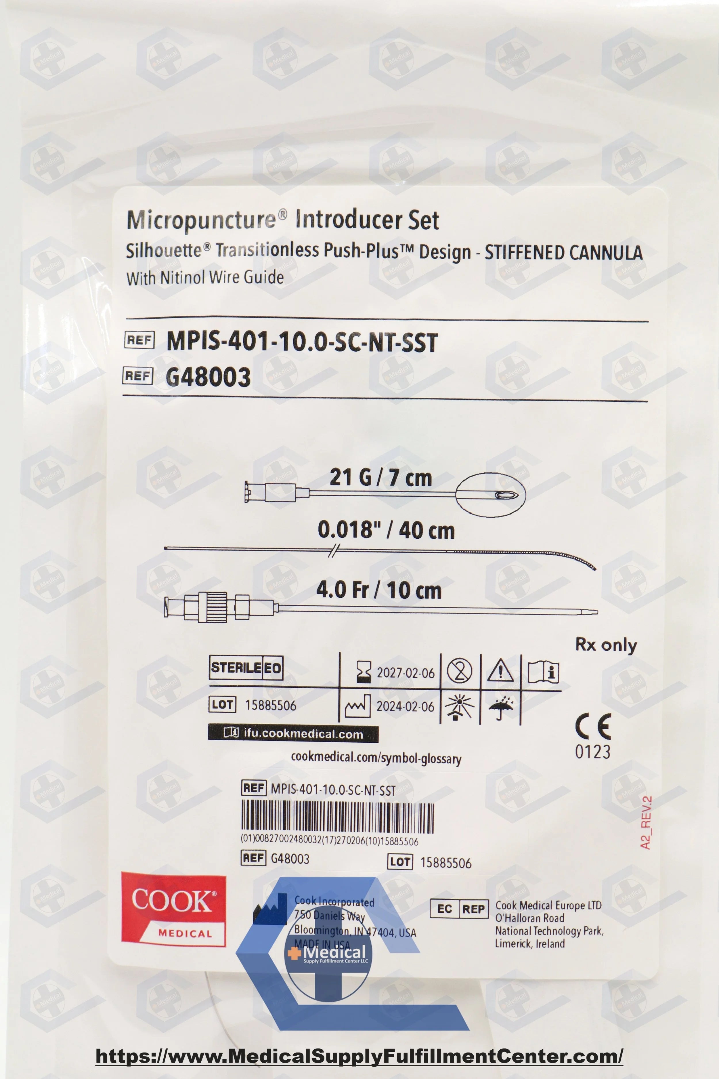 COOK | G48003 | IN-DATE | EACHES | Micropuncture Introducer Set, Transitionless, Stiffened Cannula, Nitinol Wire 4F x 10cm
