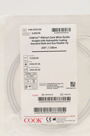 Cook Medical | G30476 | HW-035150 HI WIRE NITINOL CORE WIRE GUIDE WITH HYDROPHILLIC COATING .035" X 150 CM