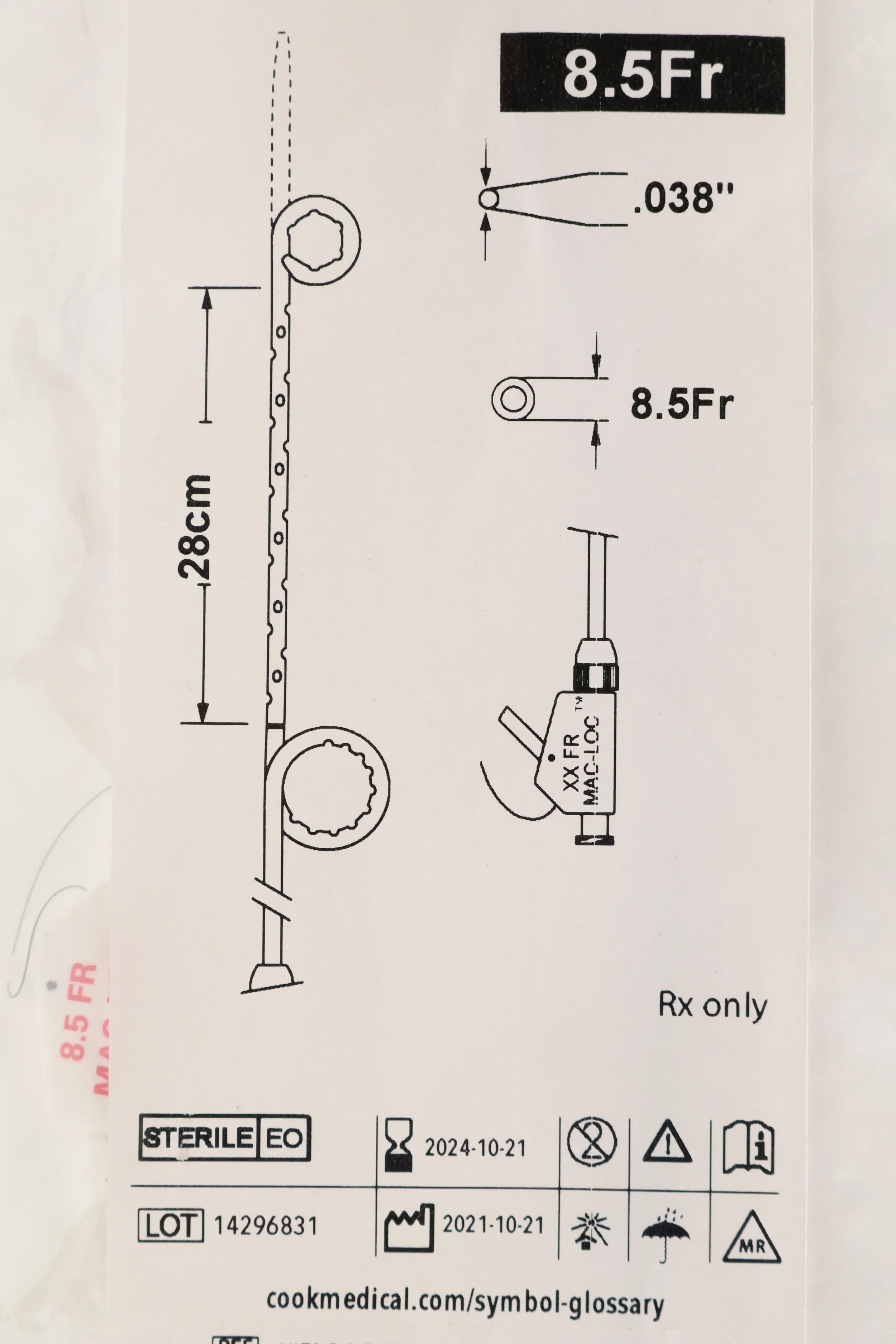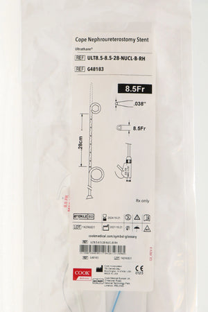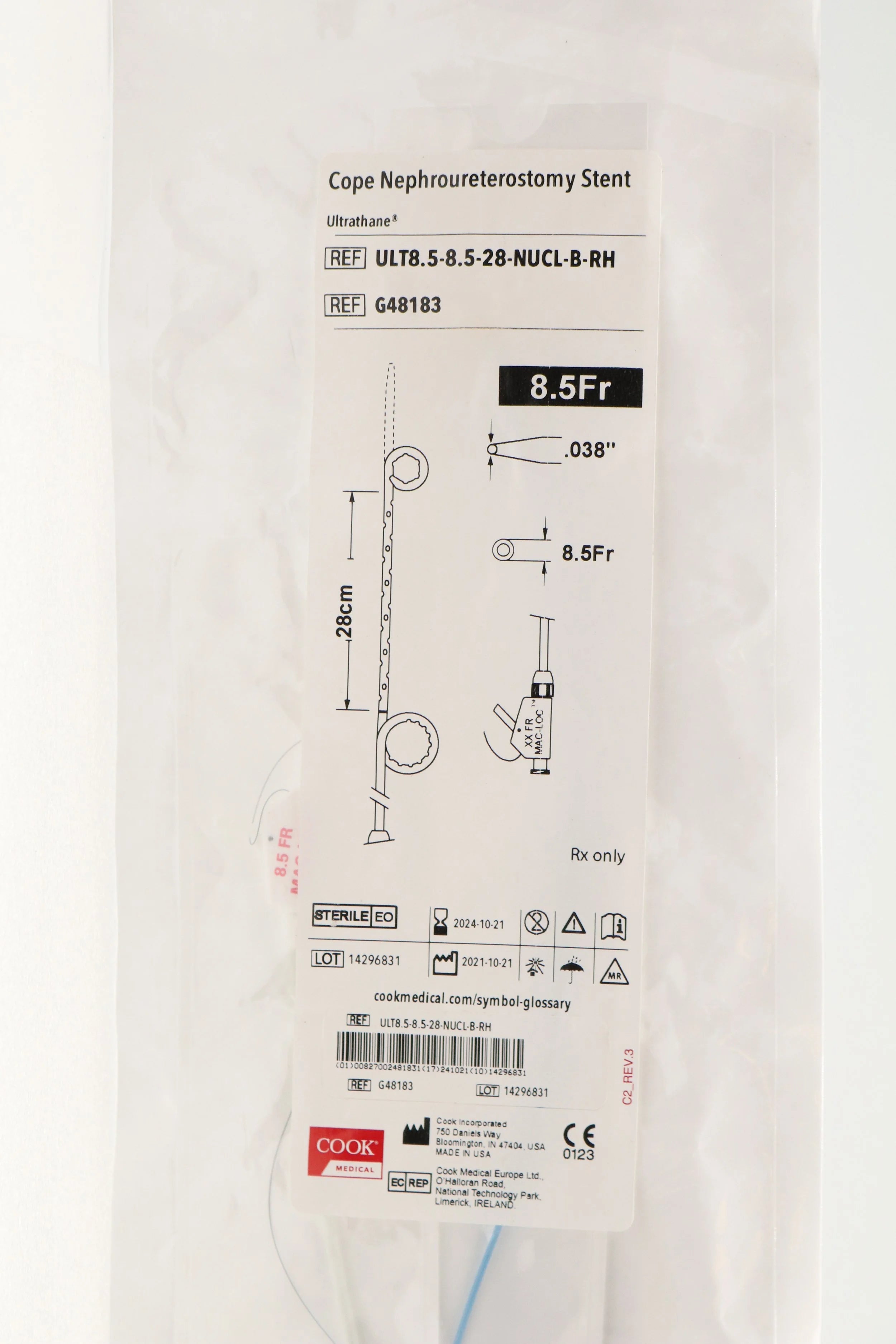 COOK MEDICAL G48183 SHORT DATE EACHES COPE NEPHROURETEROSTOMY STENT, ULTRATHANE, MAC-LOC 8.5F, 28CM BETWEEN PIGTAILS