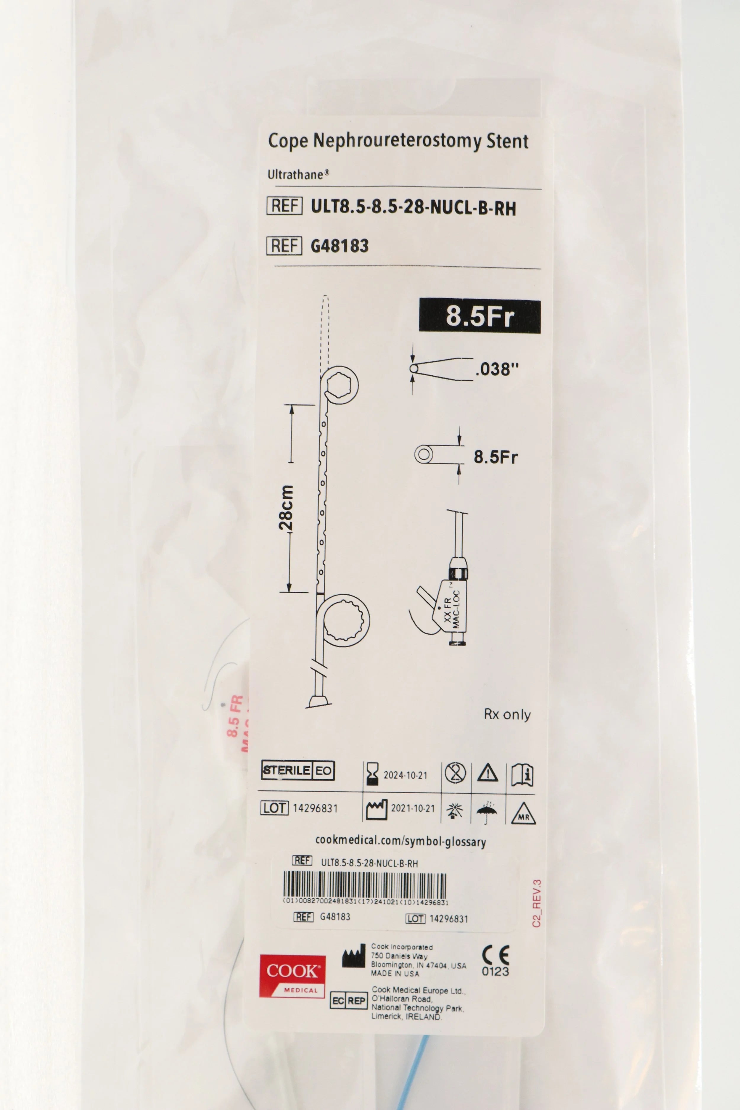 Cook Medical | G48183 | COPE NEPHROURETEROSTOMY STENT, ULTRATHANE, MAC-LOC 8.5F, 28CM BETWEEN PIGTAILS