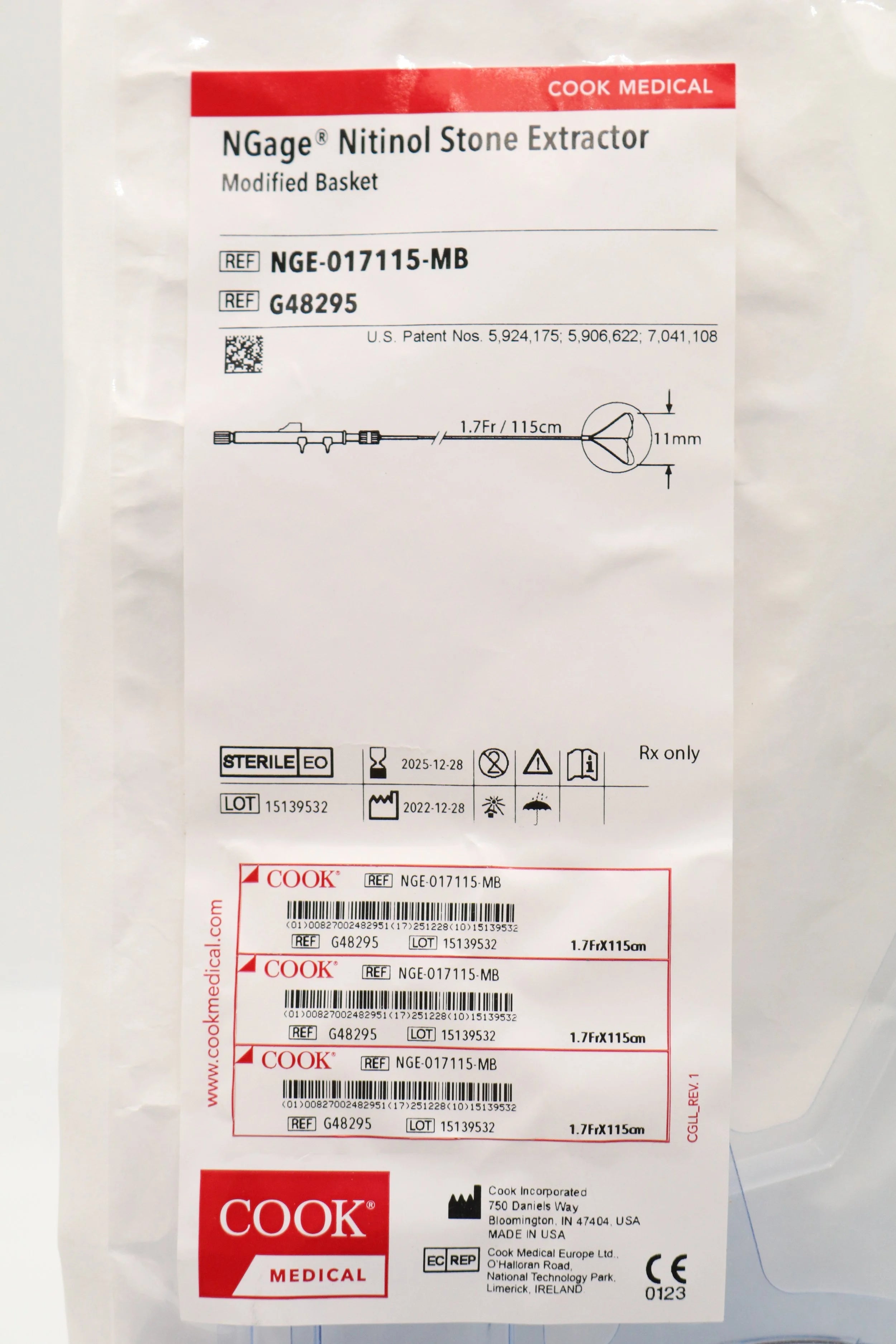 COOK MEDICAL | G48295 | SHORTDATE | EACHES | NGAGE NITINOL STONE EXTRACTOR MODIFIED BASKET, 11MM, 1.7FR/115CM (NGE-017115-MB)