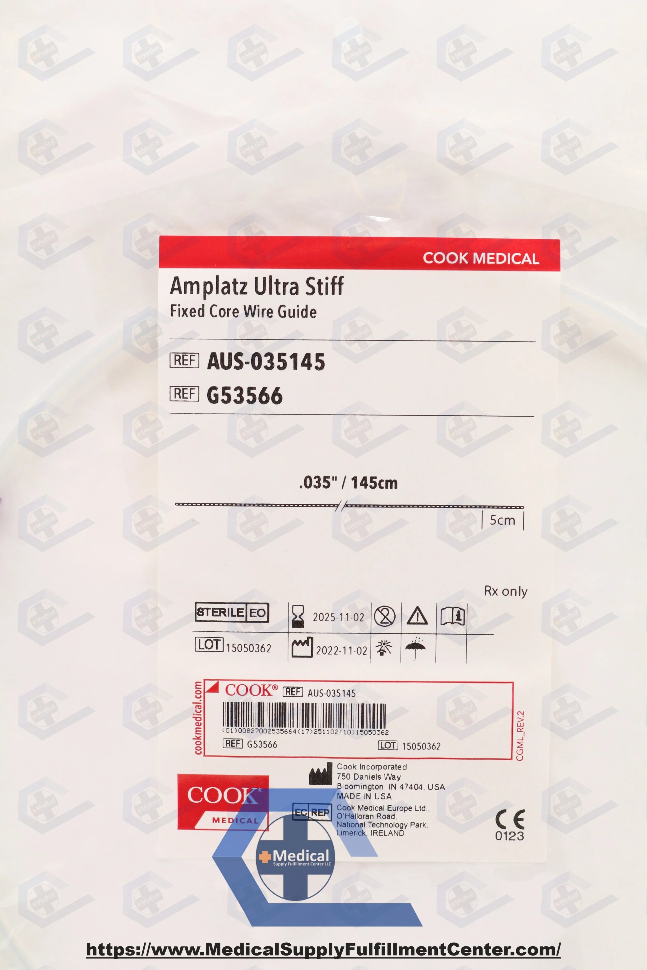 COOK MEDICAL | G53566 | SHORT DATE | EACHES | Amplatz Fixed Core Wire Guide, Ultra Stiff 0.035" x 145cm