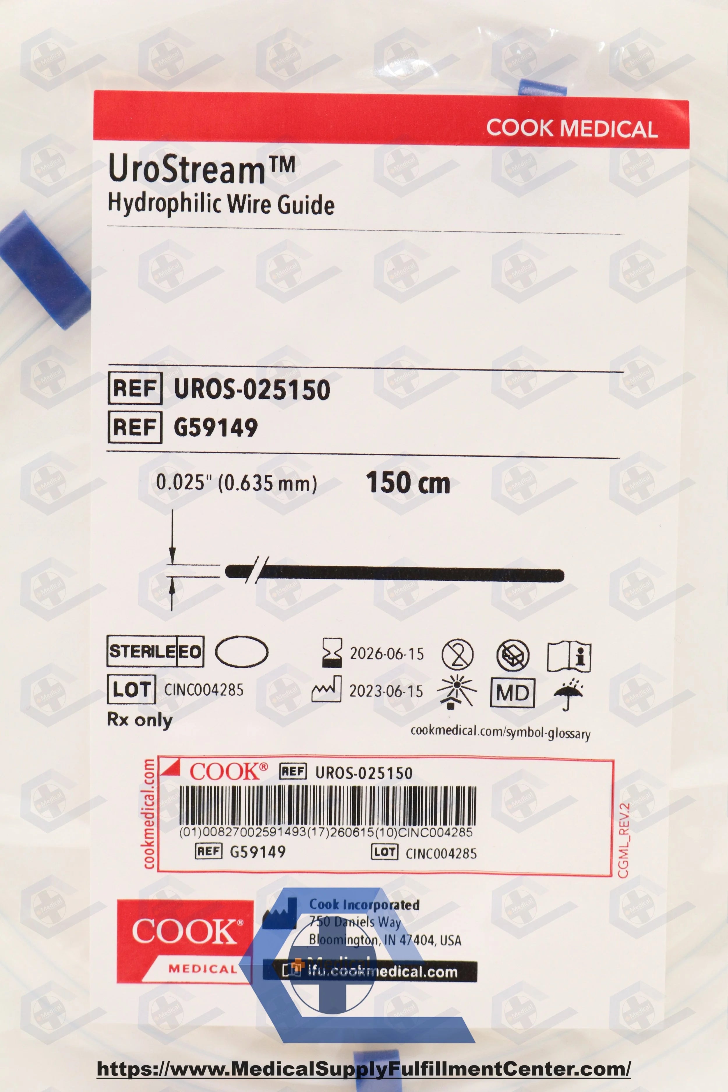 Cook MEDICAL | G59149 | IN-DATE | EACHES | UROS-025150 UroStream Guidewire, Hydrophilic, Standard, Straight 0.025" x 150cm