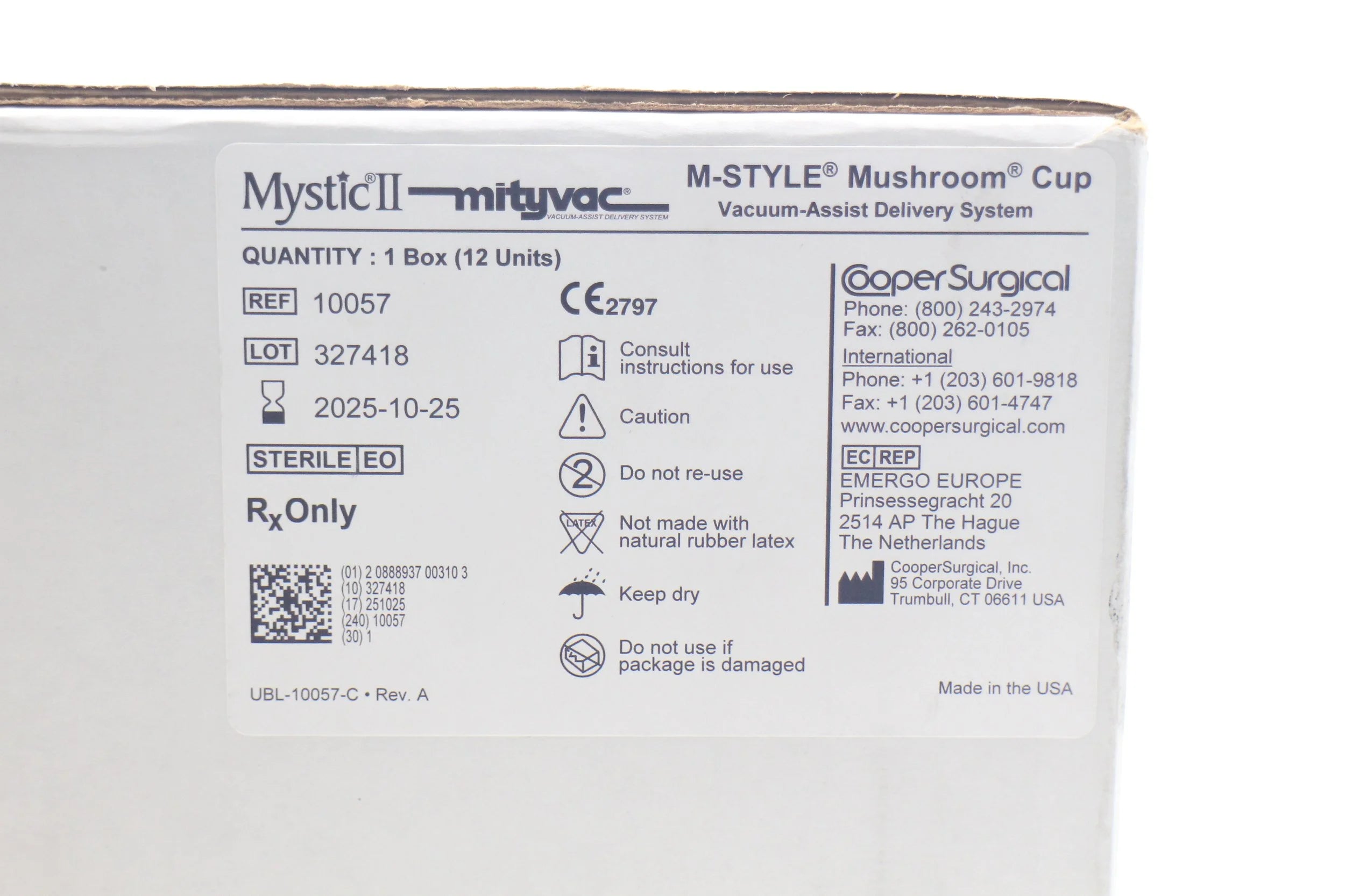 Cooper Surgical | 10057 | IN-DATE | Box of 12 | Mystic II Mityvac M-STYLE Mushroom Cup Vacuum-Assist Delivery System